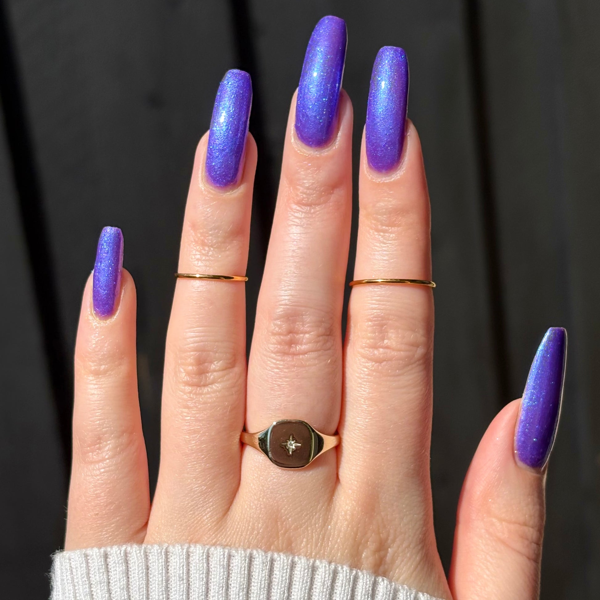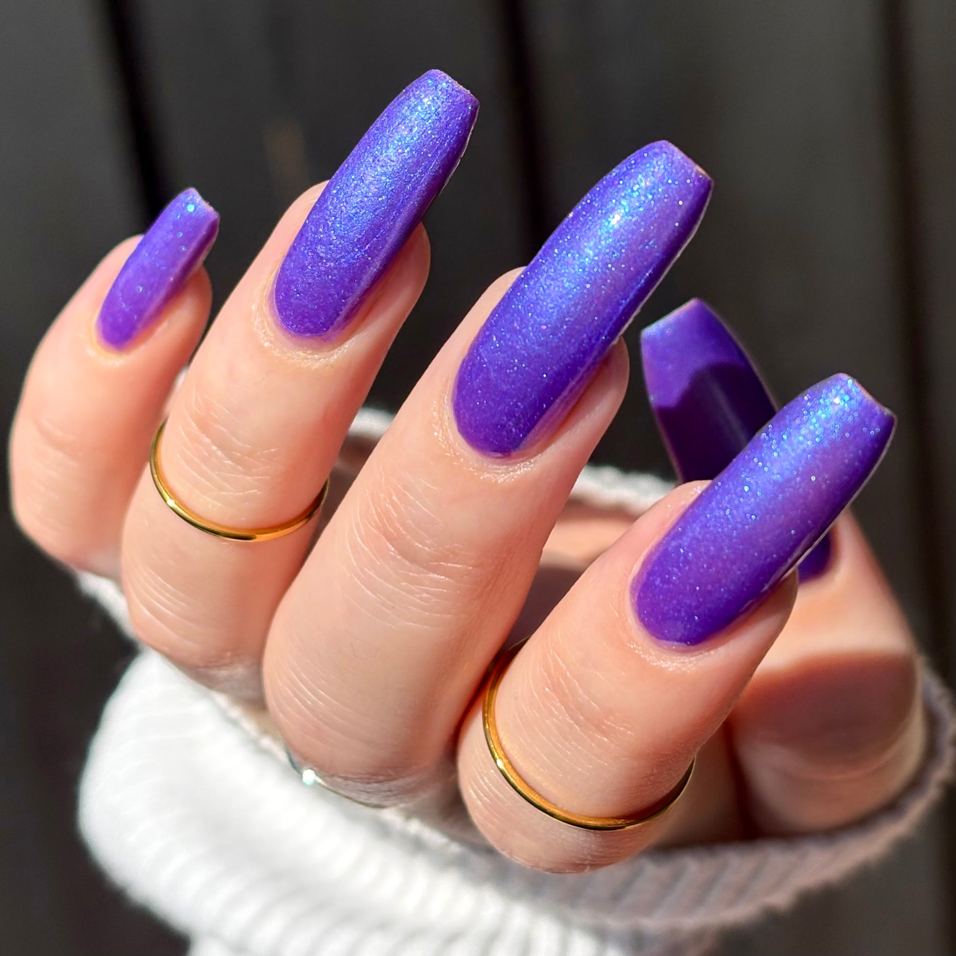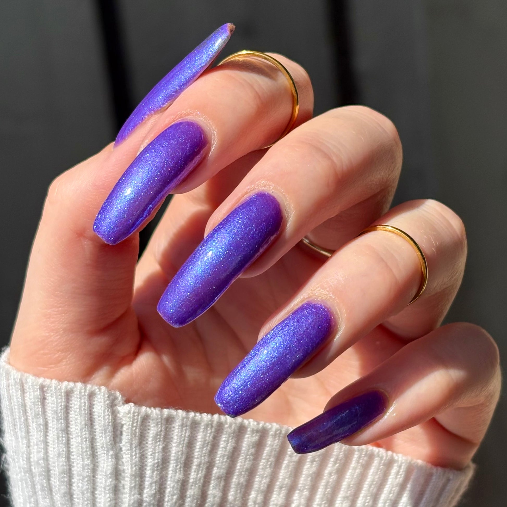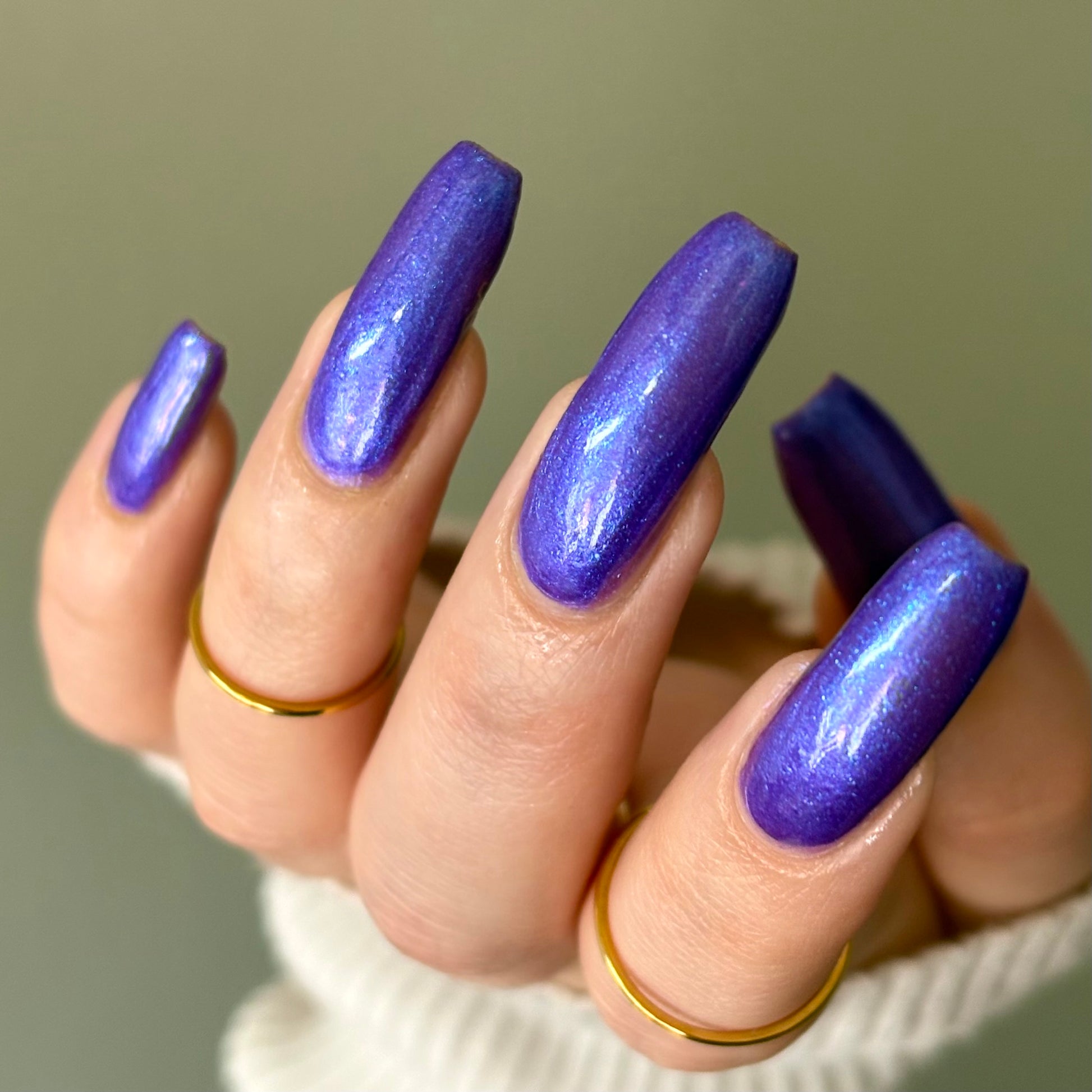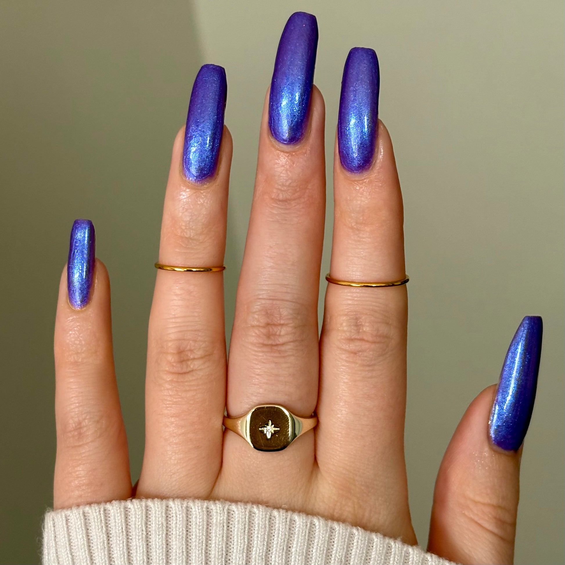 I love the eff out of a great blue/purple polish and this eponymous shade is a must-own. Very flattering!