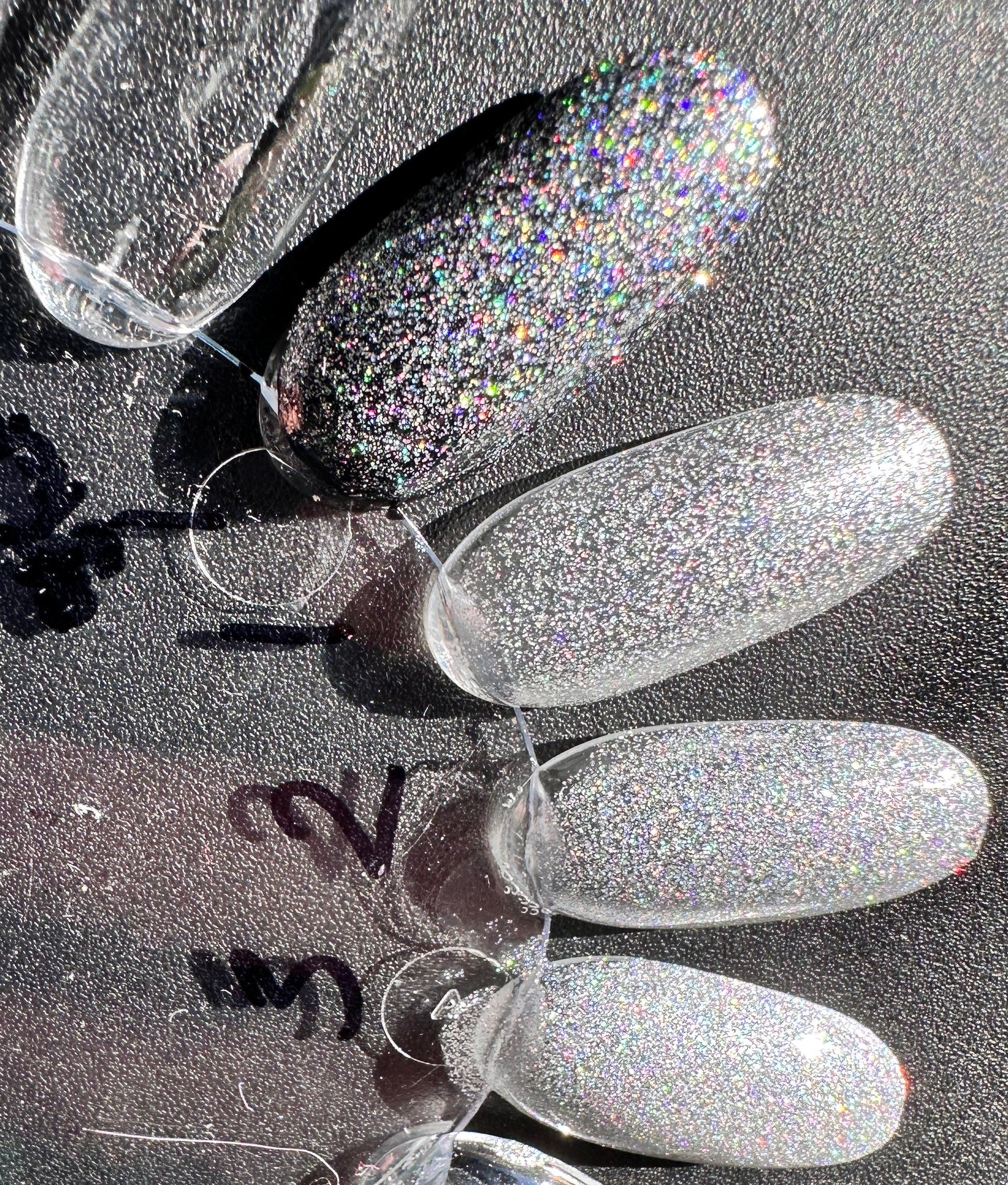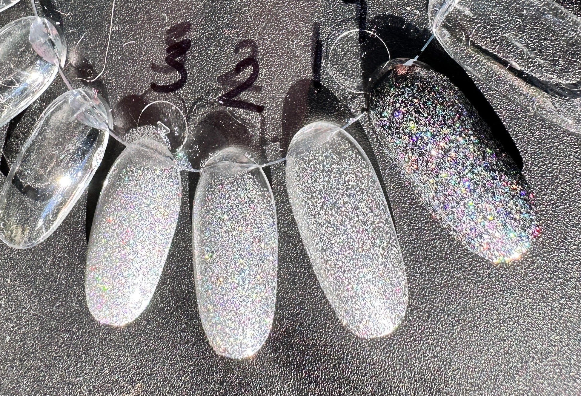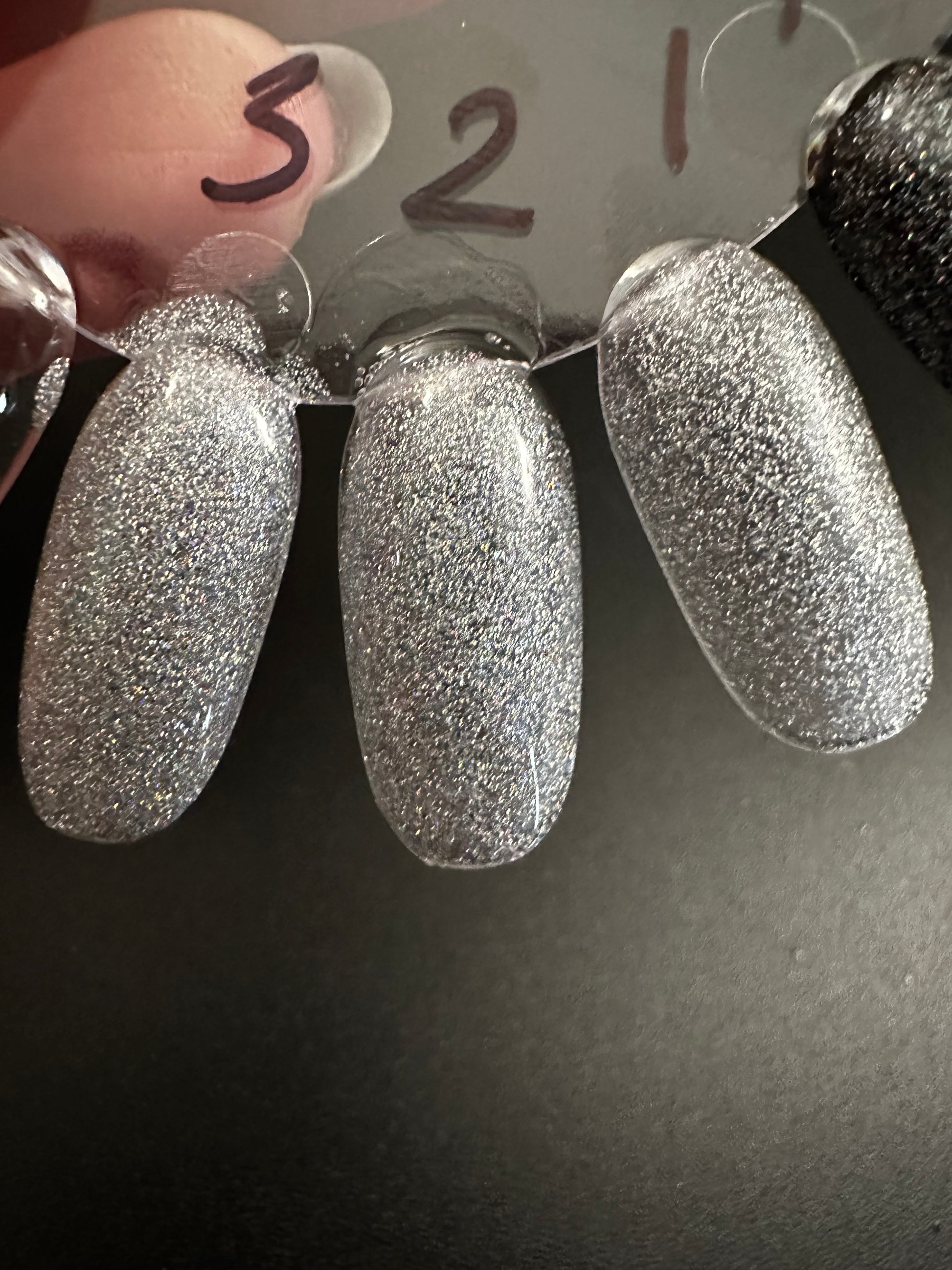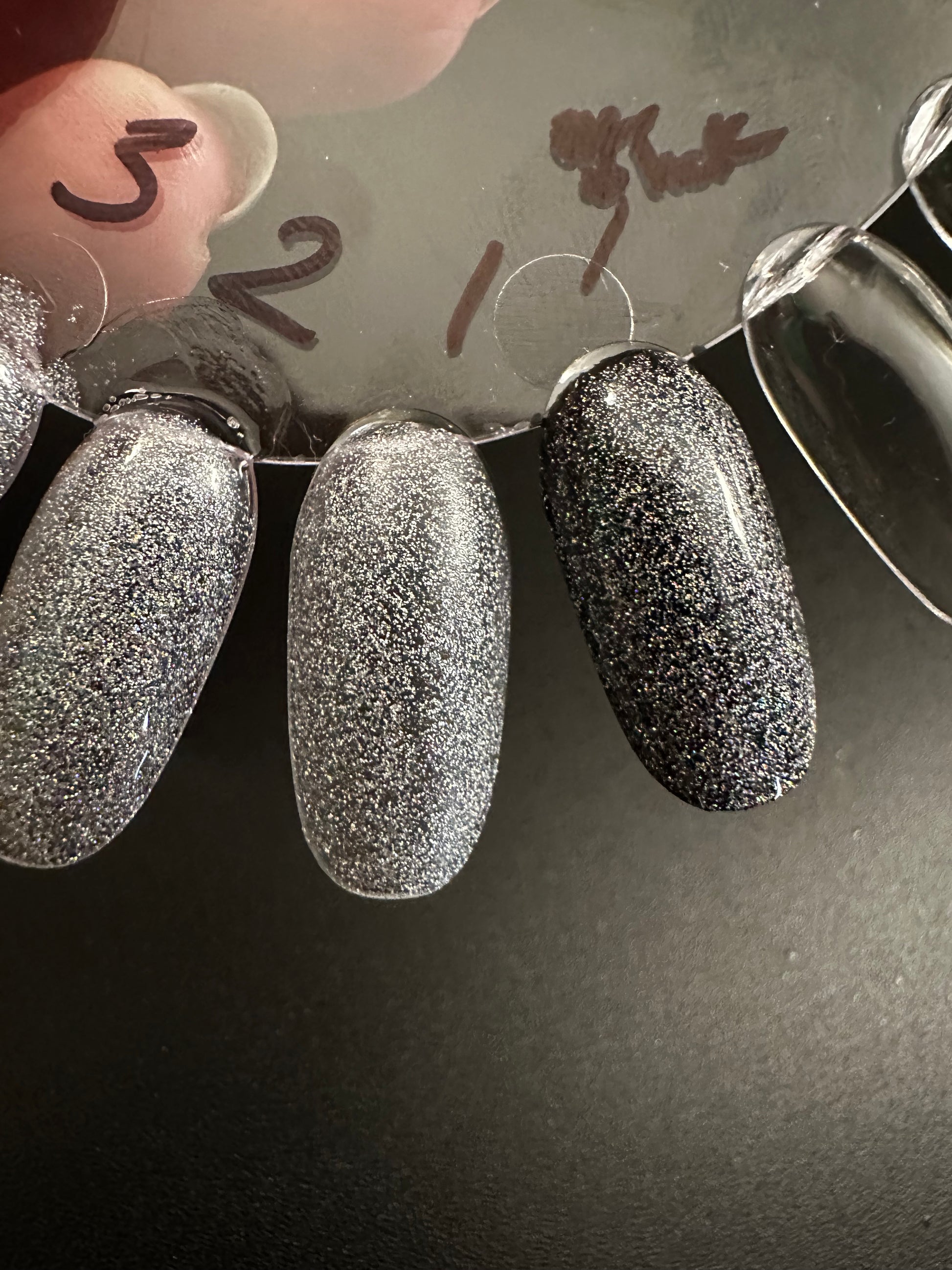 This is shown on the swatch wheel in 3, 2 and 1 coats and 1 coat over a black cream. All but the 1 coat are topped with Containment Facility glitter smoother and Shut The Vault Door QDTC. This has a silver base pigment which means its not clear for toppering purposes. Toppers coming soon!