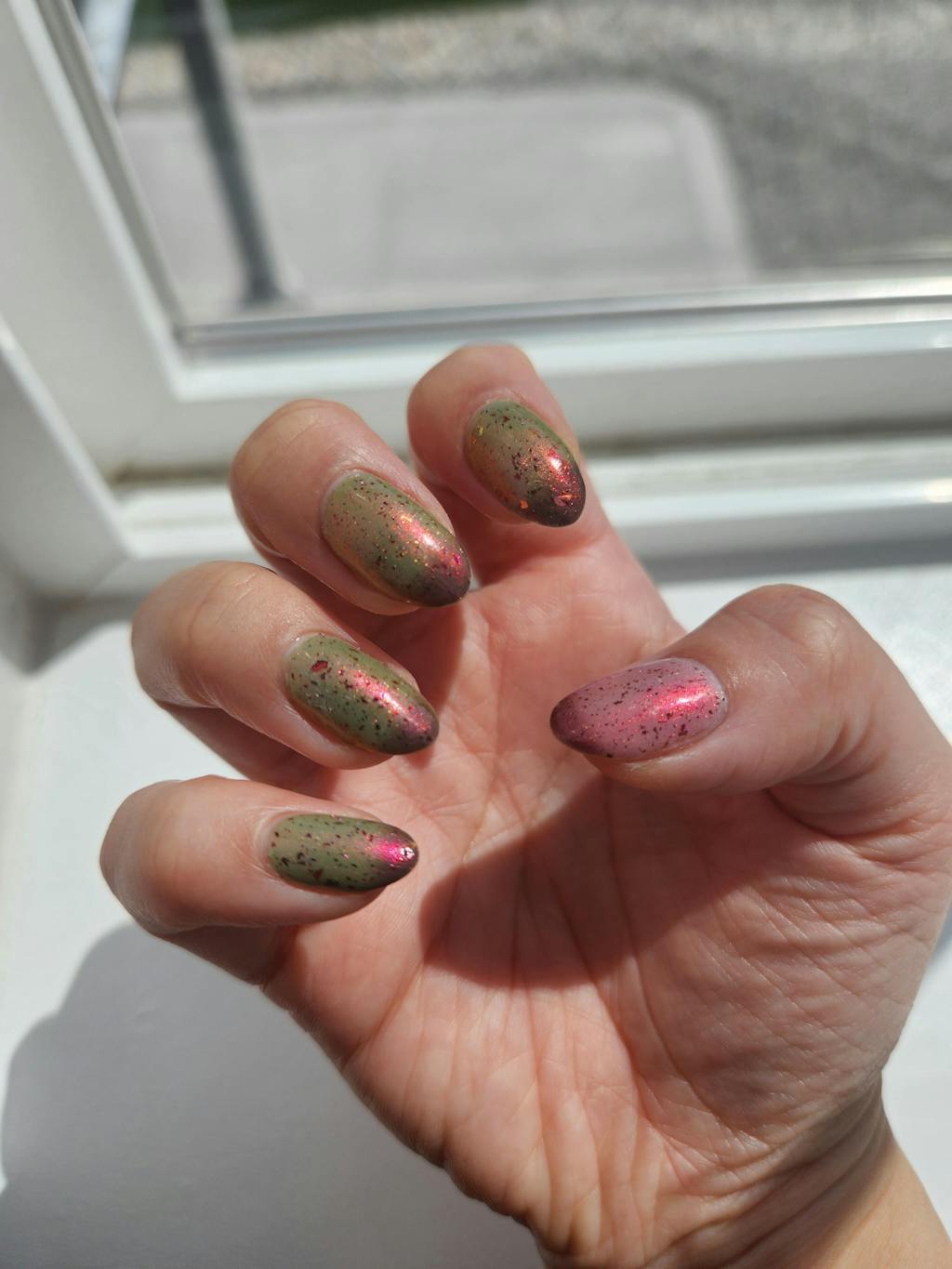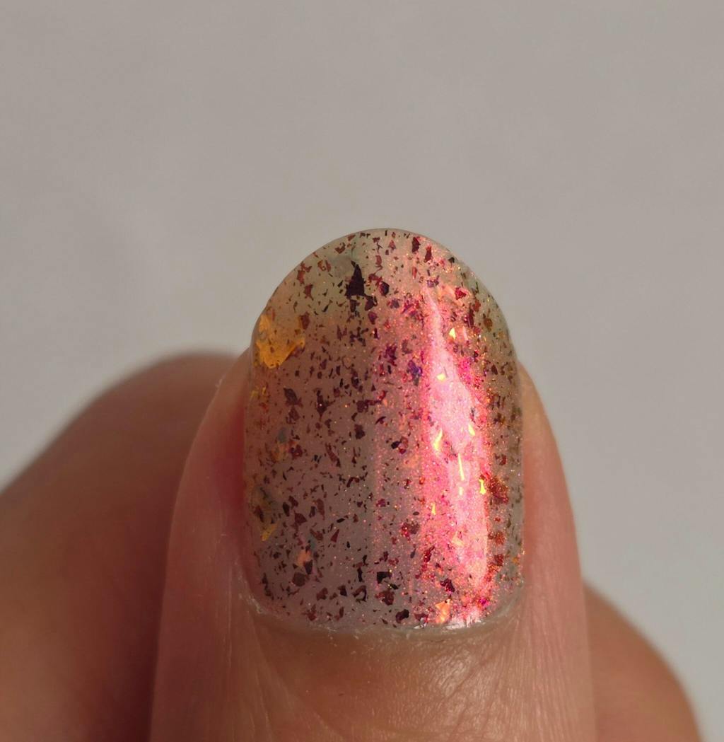 Catching fireflies has red to black multi-chrome flakes, UCC red/orange/gold flakes and intense red aurora shimmer. This fire-like shade can be either a topper or a standalone shade depending on personal preference. We have tested it as a topper over all the shades in The Last of Them collection and it looks amazing over almost all of the shades.