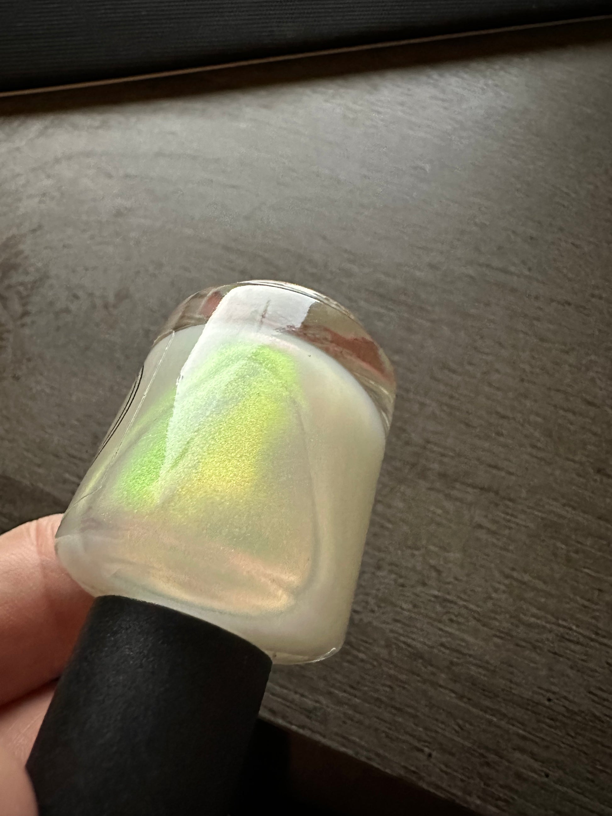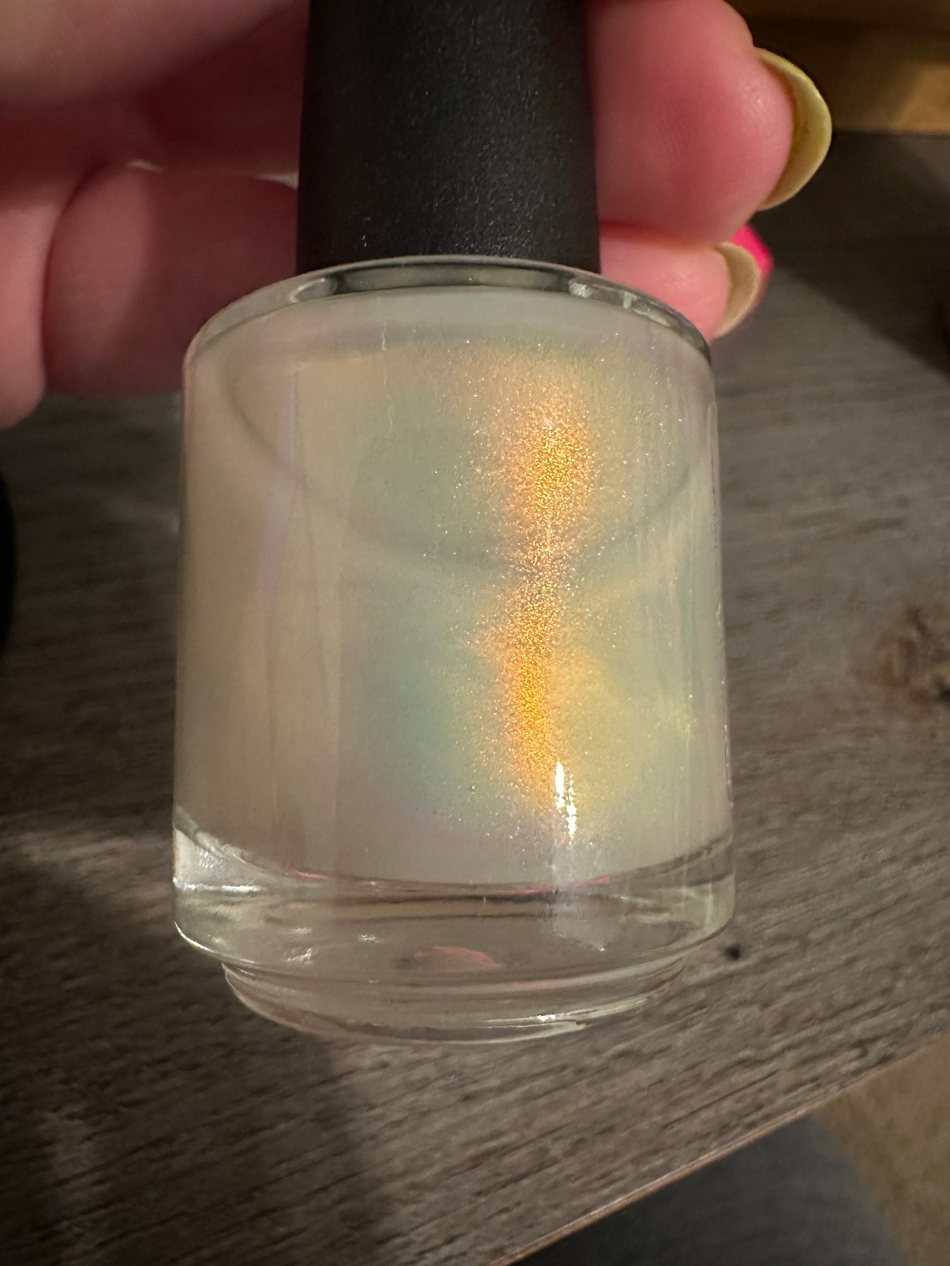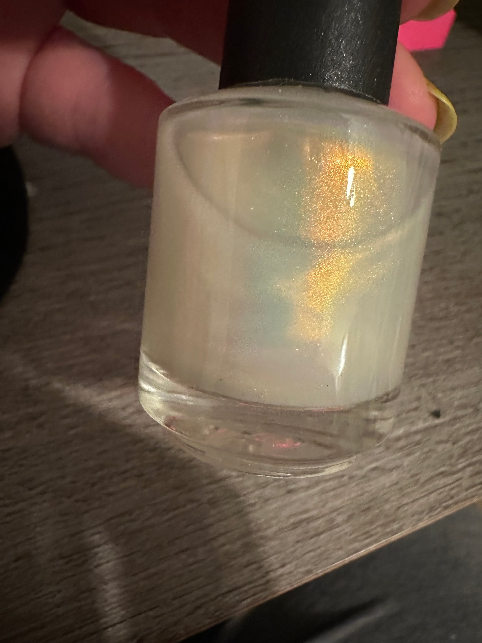 ****Please note that this is an intentionally sheer topper. More pigment added would give this a white cast and overpowers the color you are toppering. We recommend 1 coat for light dusting of shimmer and 2 coats for a more intense shift. I made this for myself for light shimmer toppering and decided to share with anyone who may be interested.****