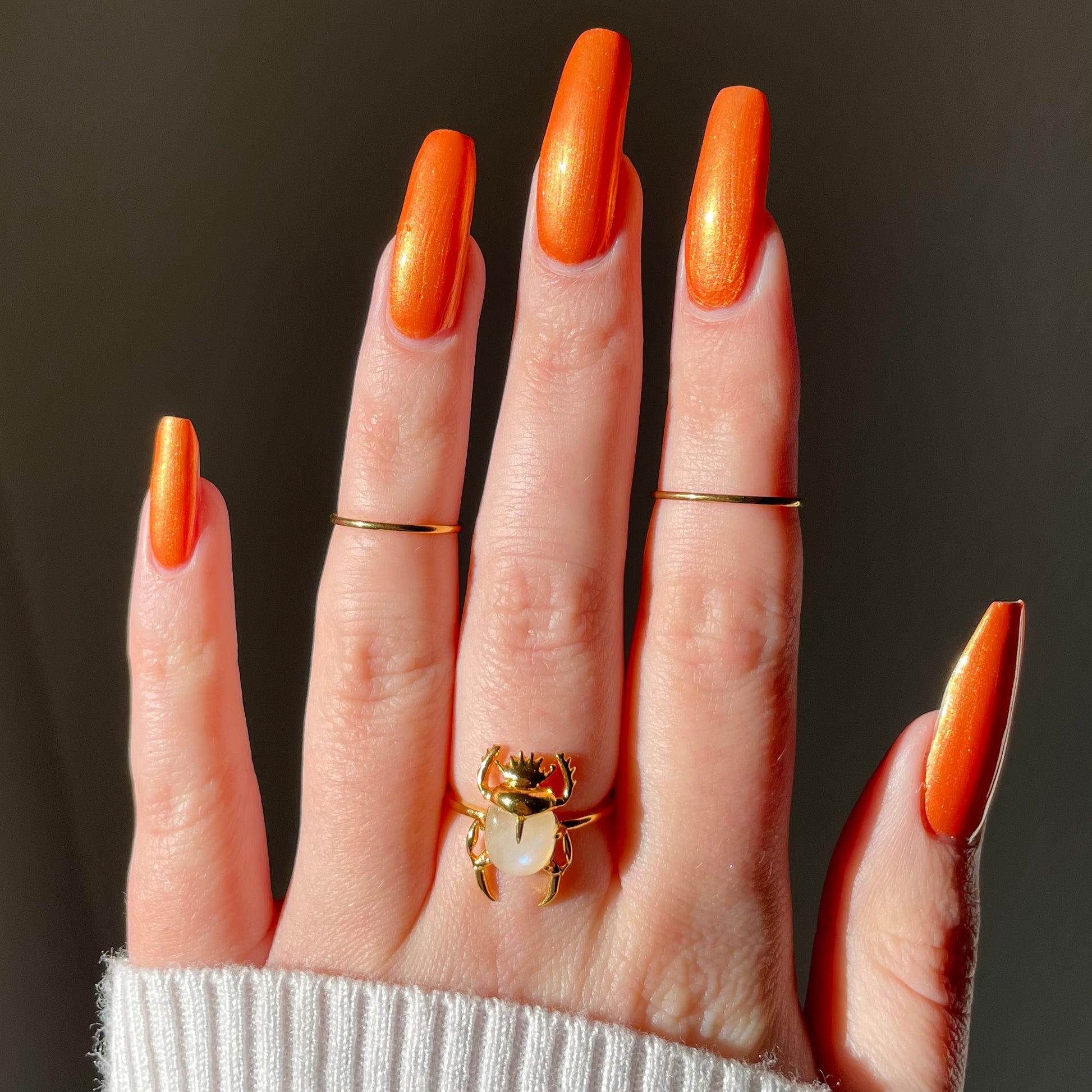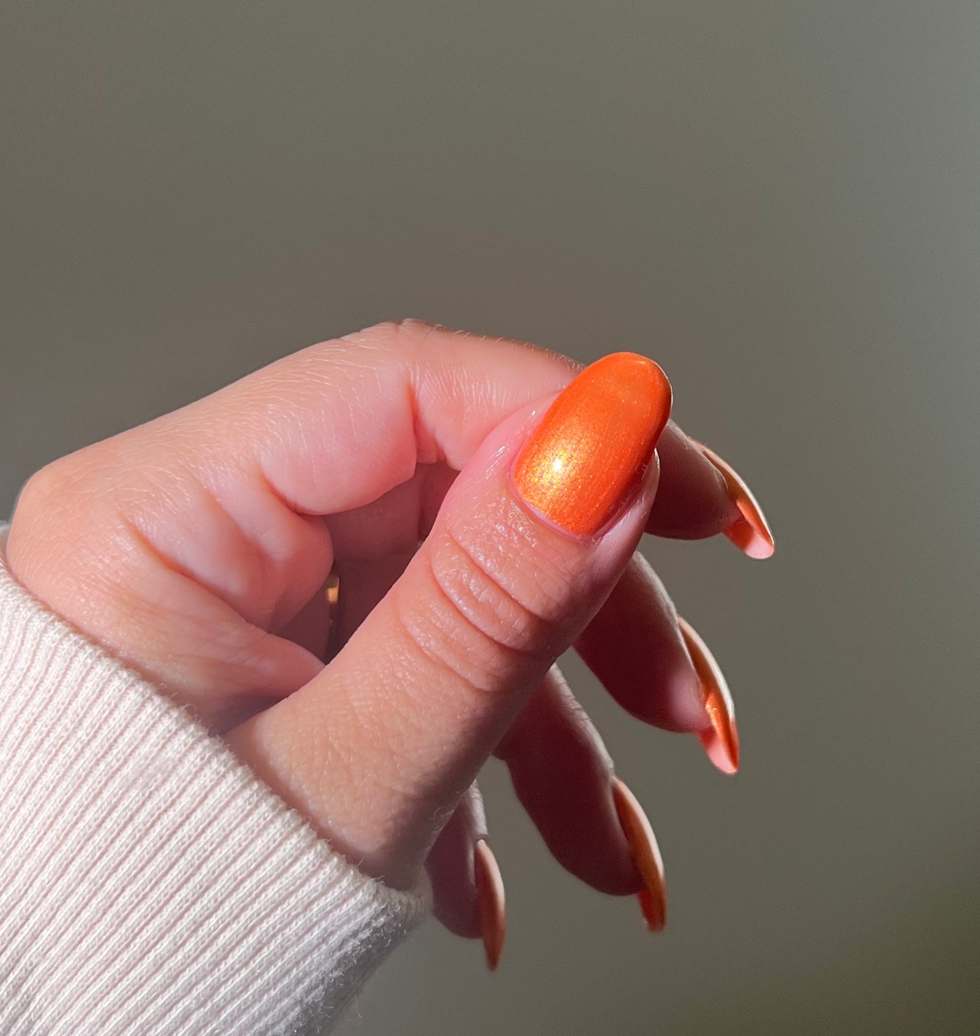 Such a vibrant and beautiful orange!! The formula is sublime and on my shorties it’s basically a one-coater. Awesome company, too!! I will be shopping here in the future.