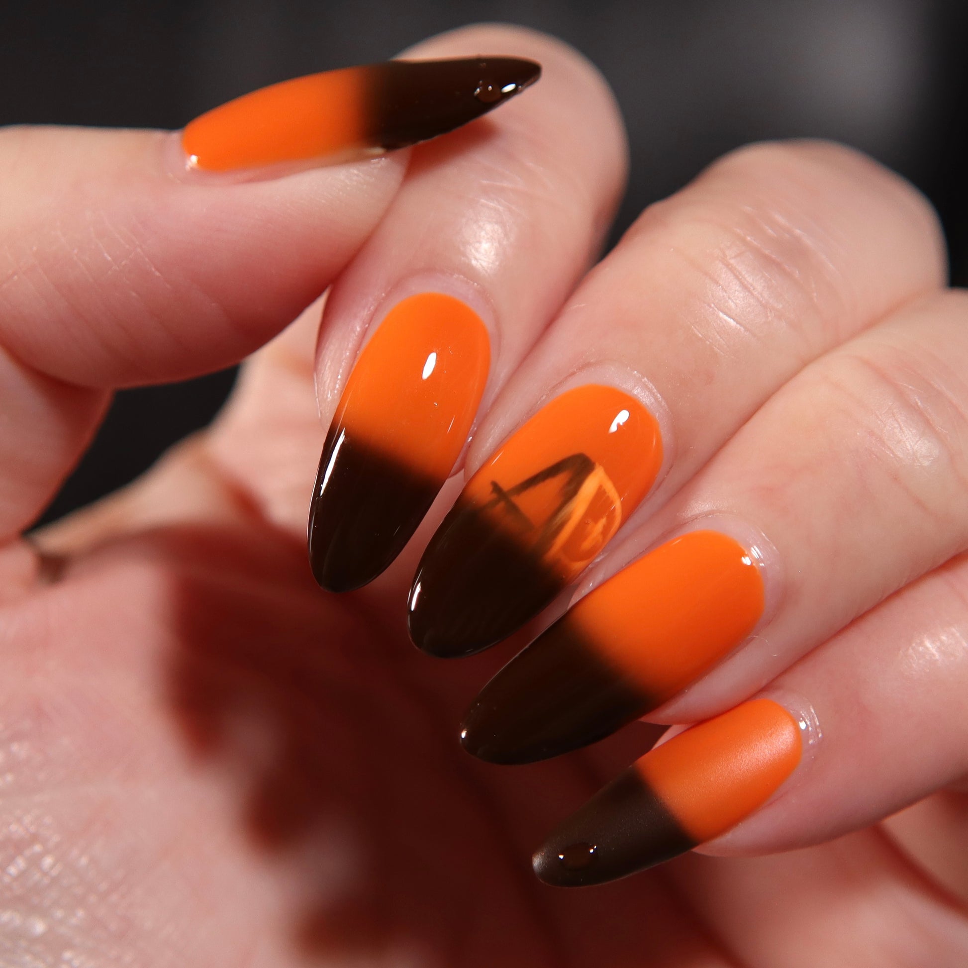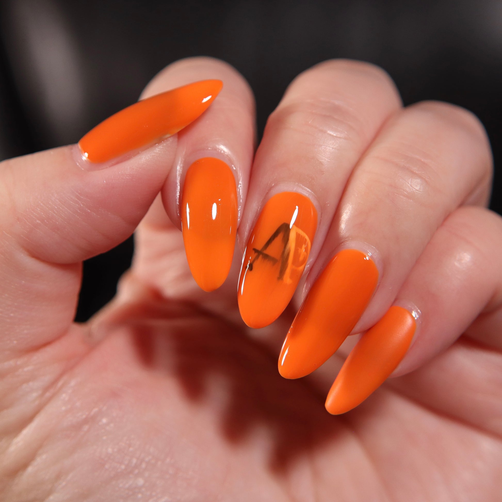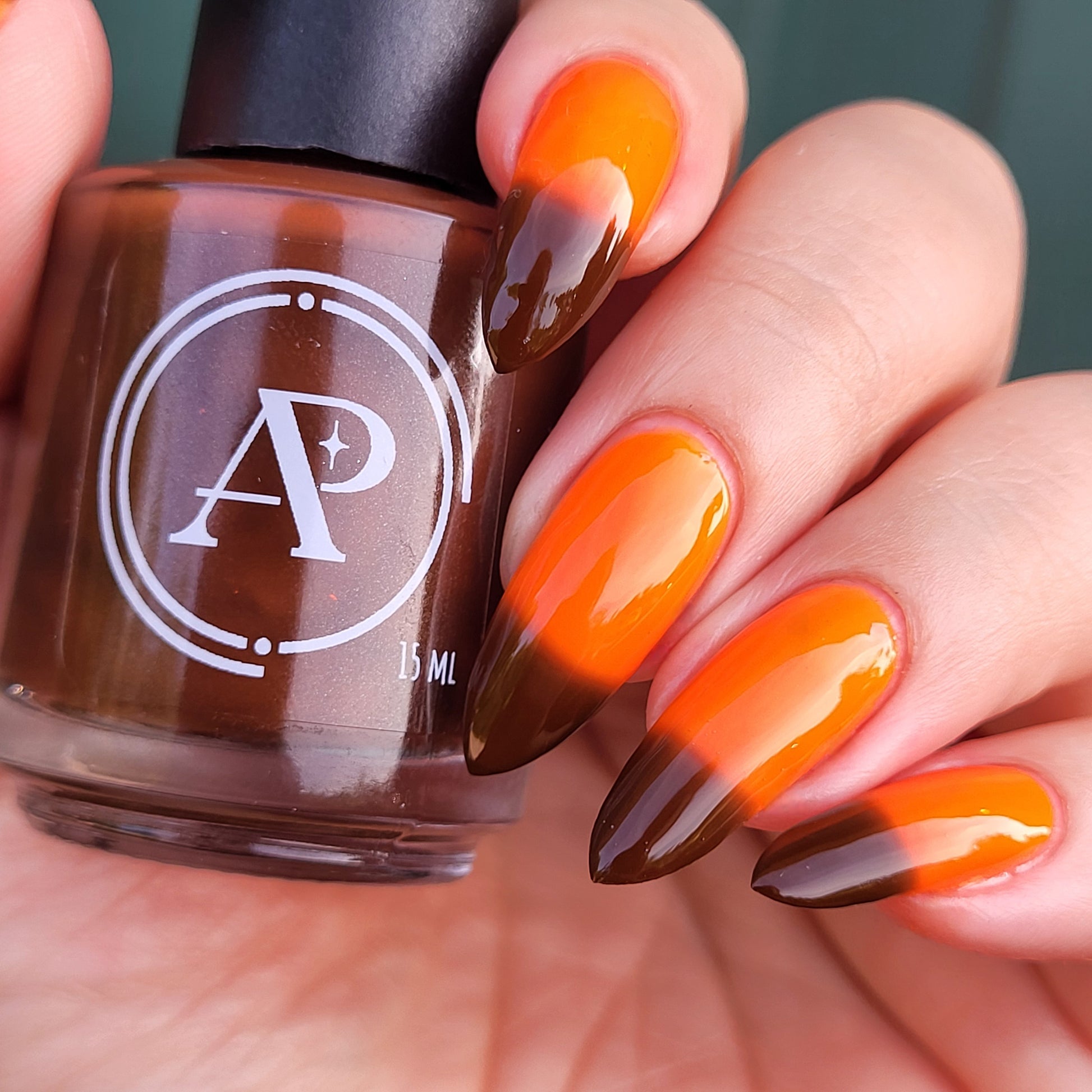 This pumpkin polish comes in a 15 ml (.5 fl oz) bottle with a paddle brush.