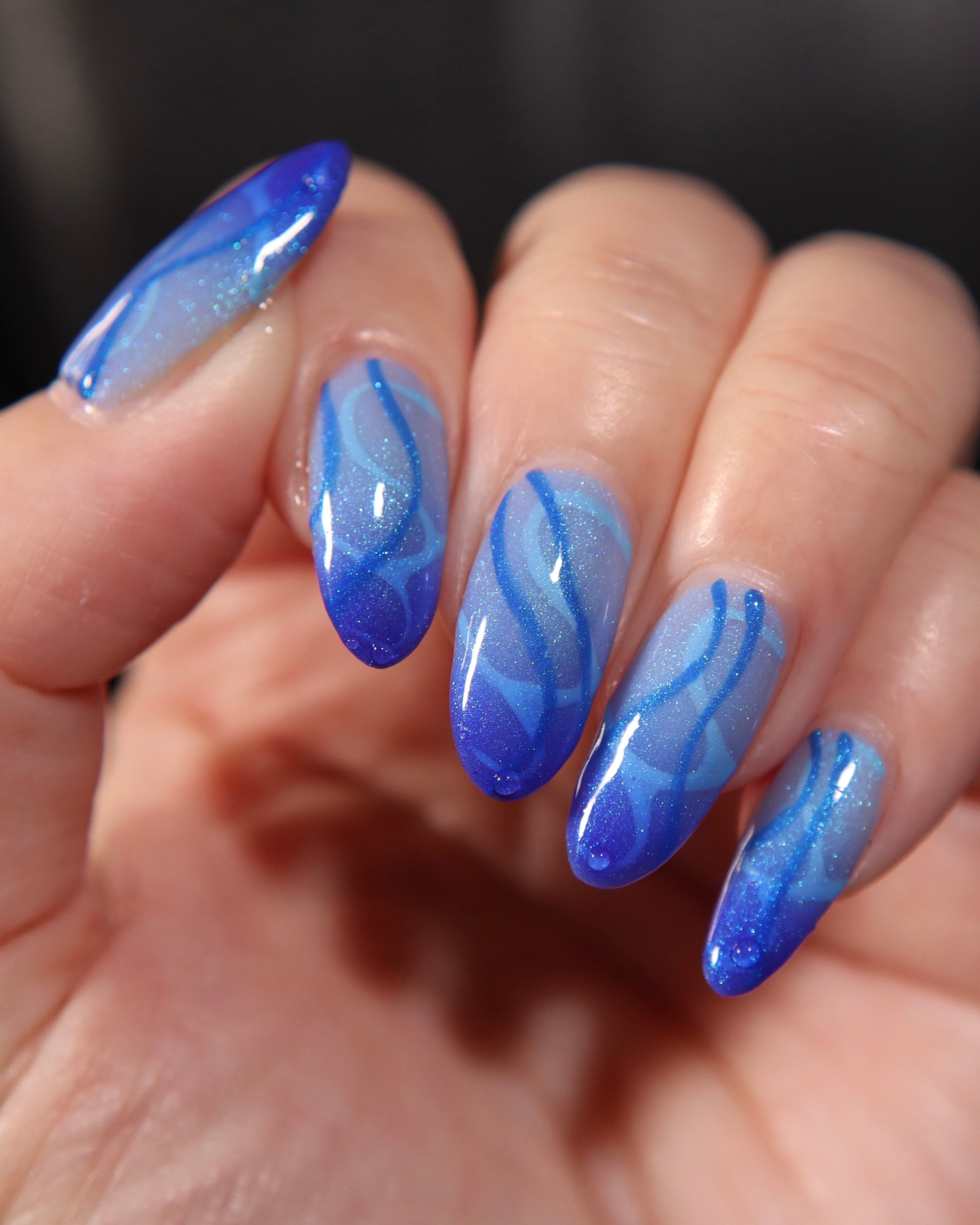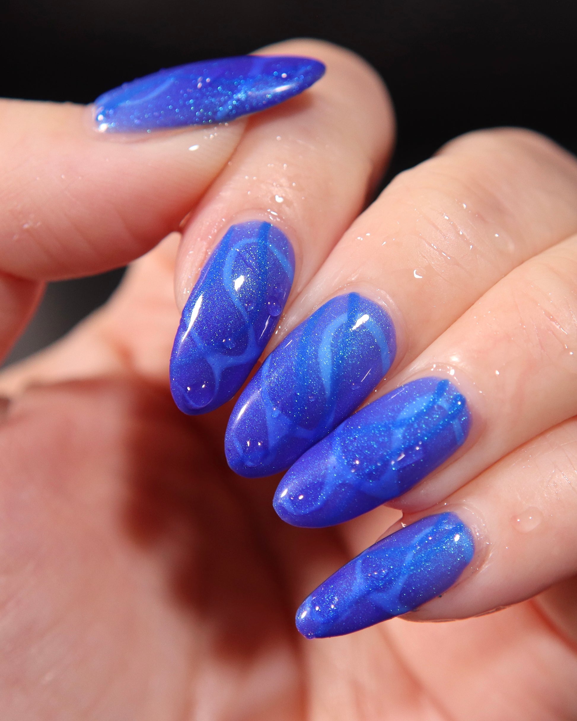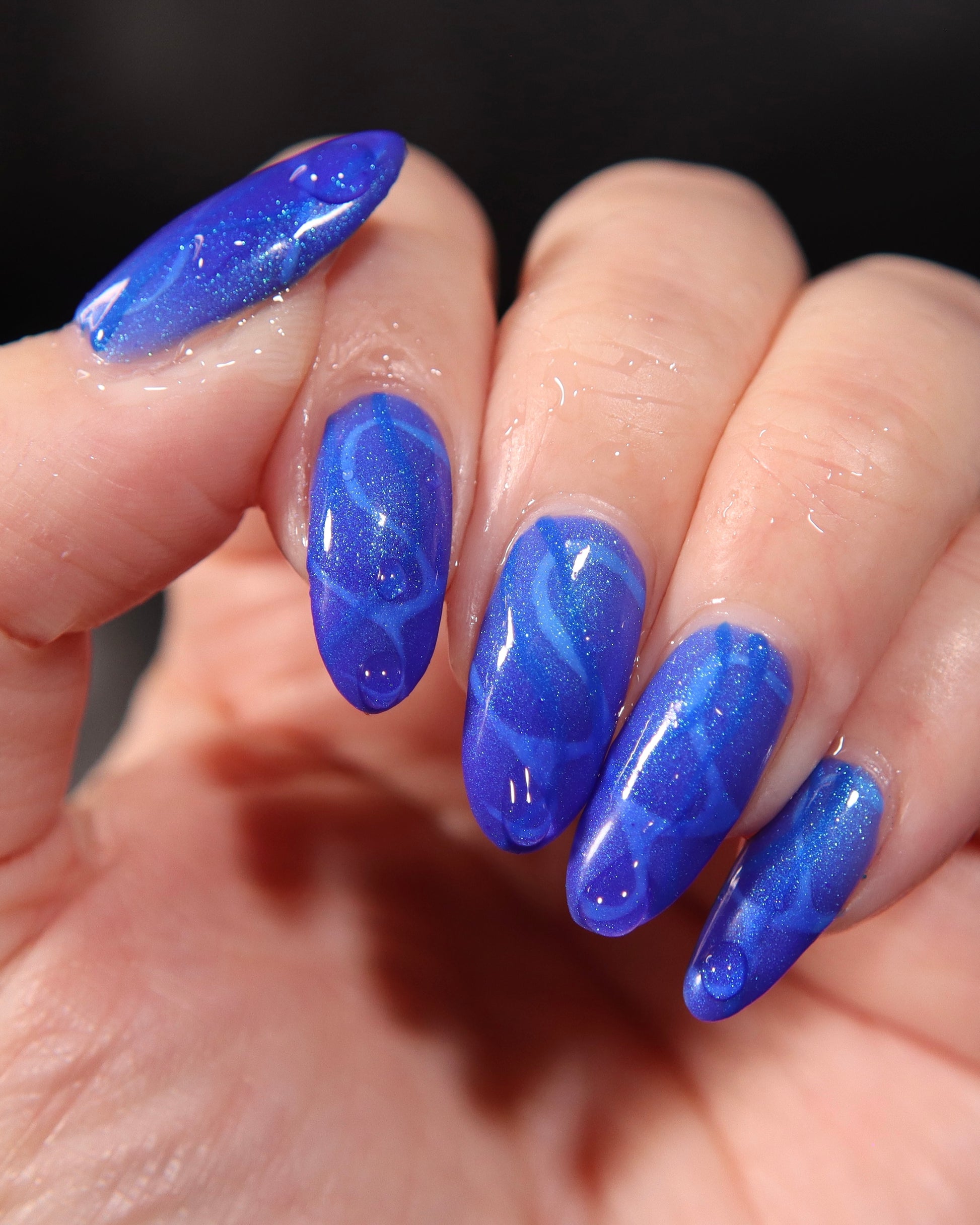 This cool navy blue (cold) to pale blue-white (warm) thermal has a soft aurora blue shimmer. Made in honor of @susan.b.tan's birthday! She has generously provided swatch photos and video!