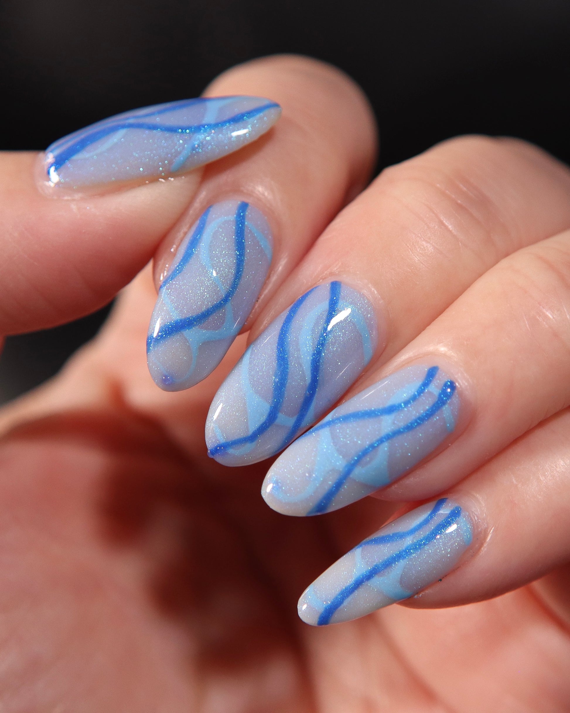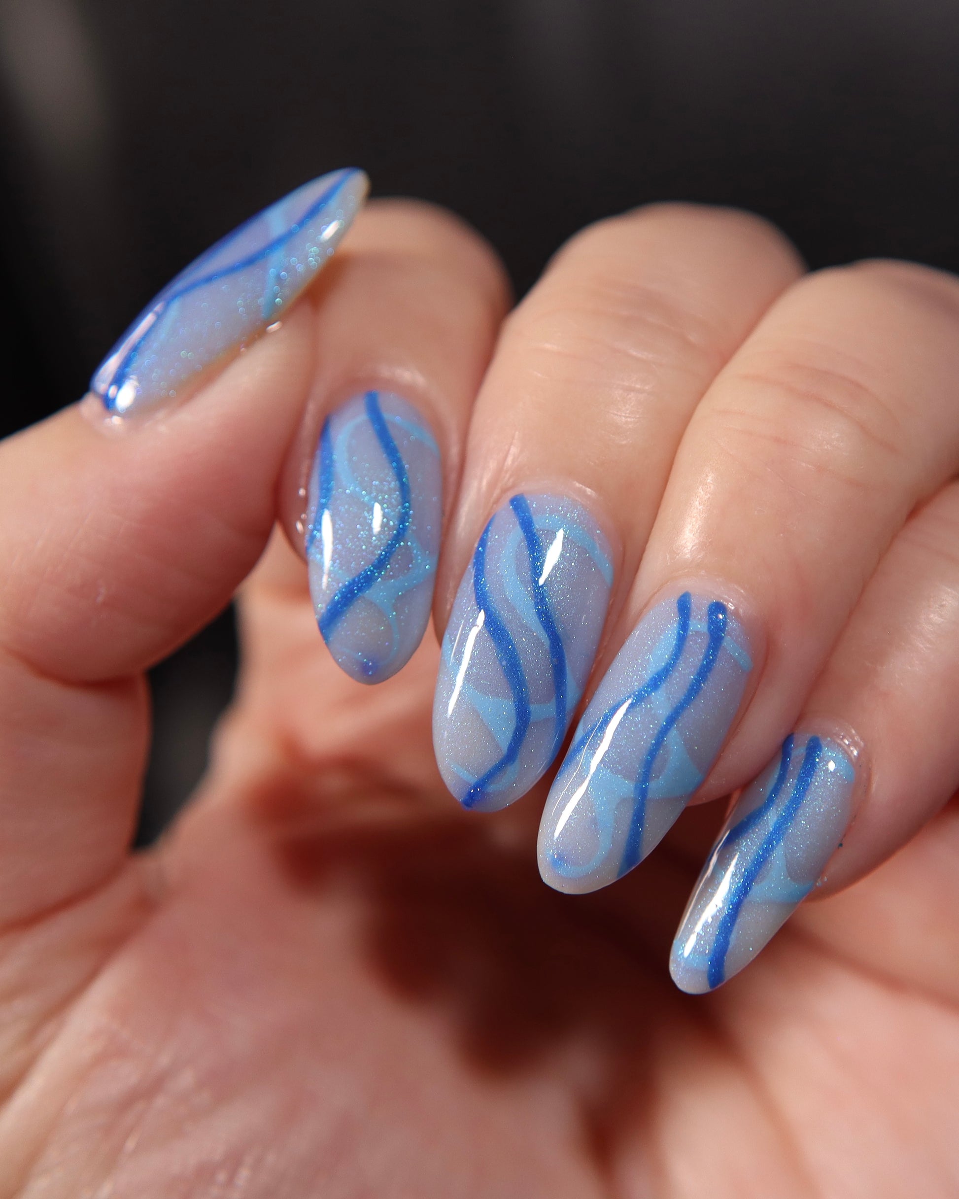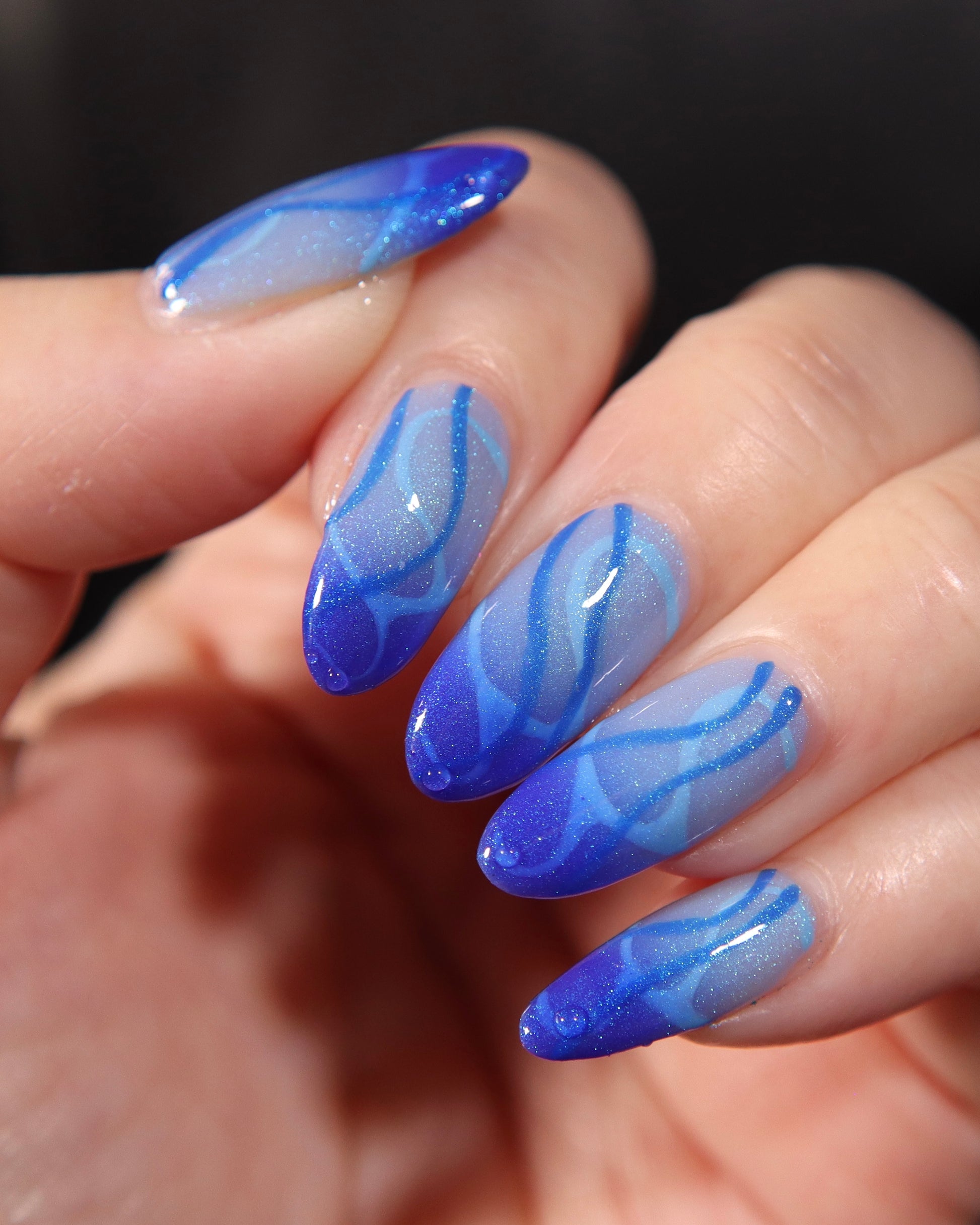 This cool navy blue (cold) to pale blue-white (warm) thermal has a soft aurora blue shimmer. Made in honor of @susan.b.tan's birthday! She has generously provided swatch photos and video!