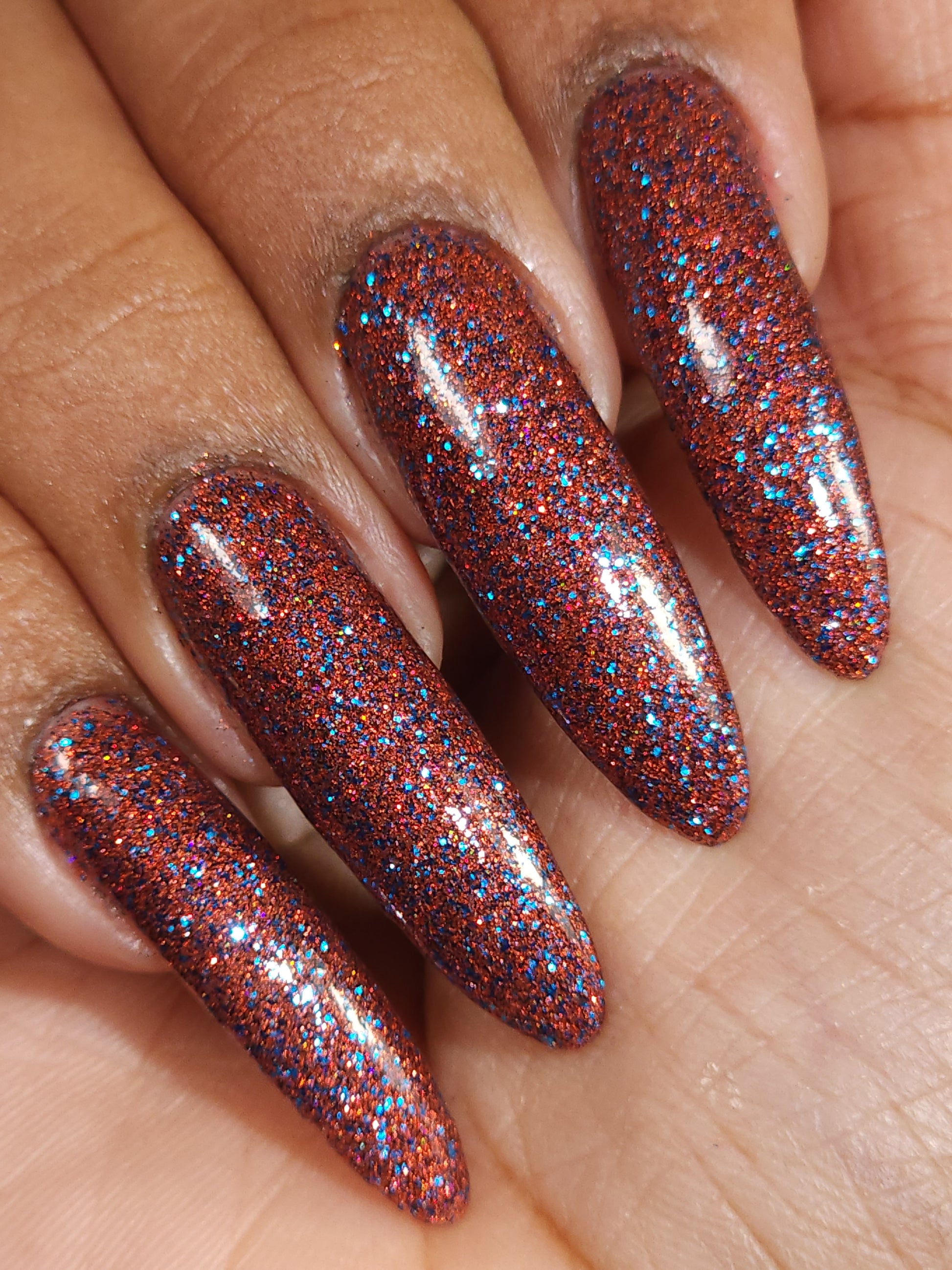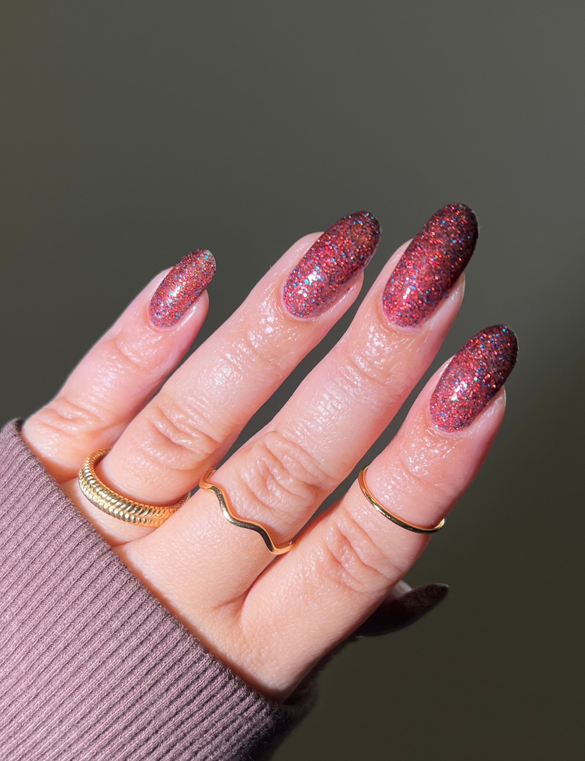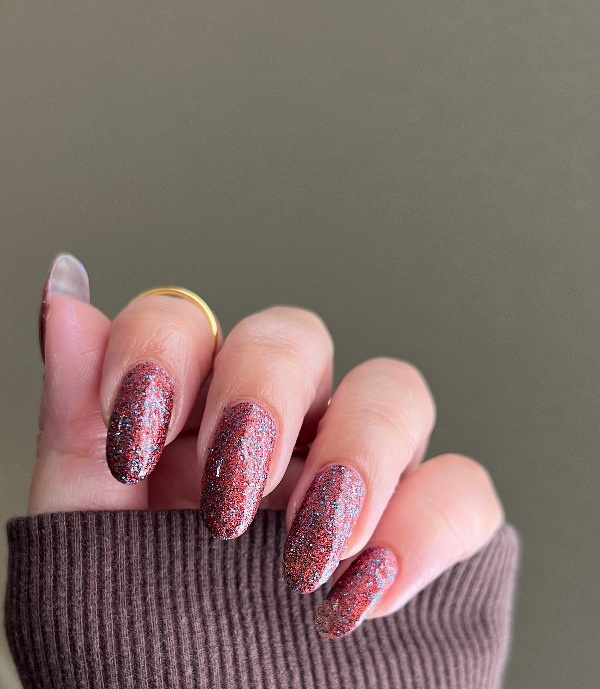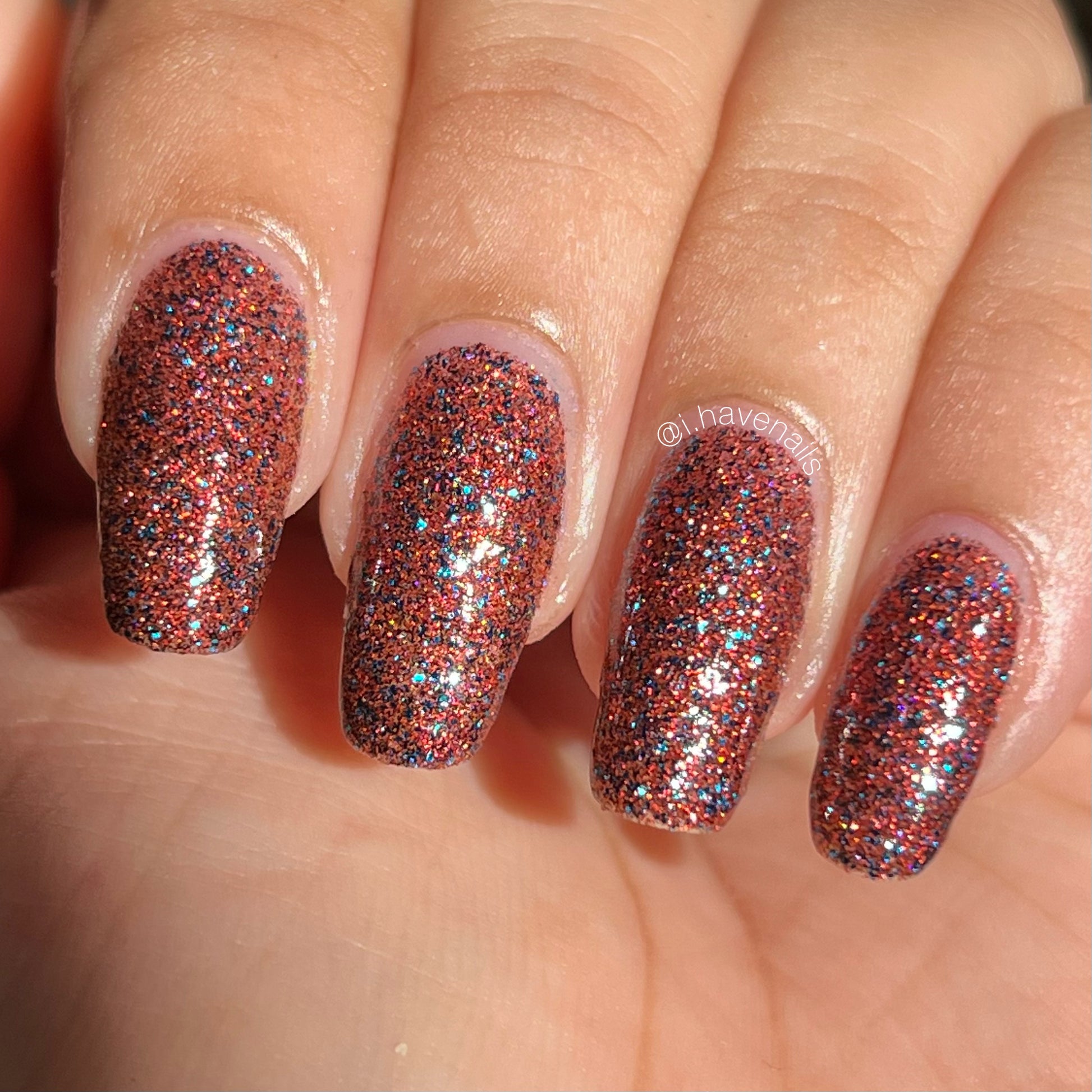 Very sparkly and true to photos on the listing. I'm happy with the application and dry time as well. Was easy to fix any accidental mess ups too, which is always a bonus as I tend to get impatient and mess my nails up.