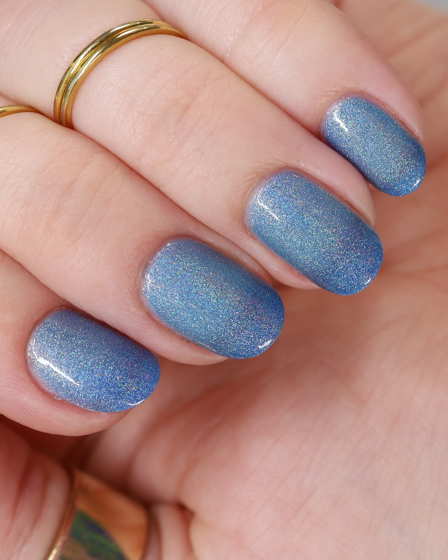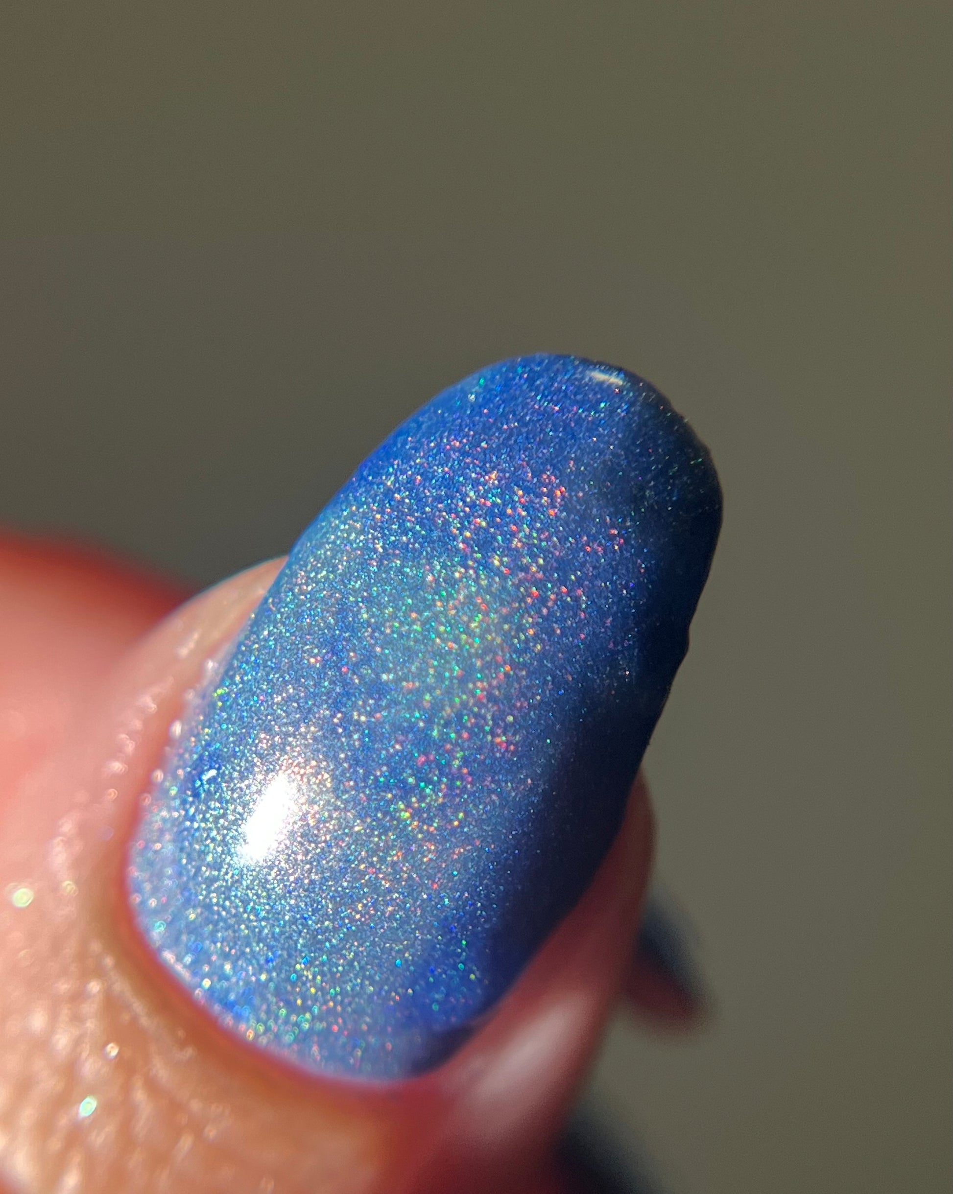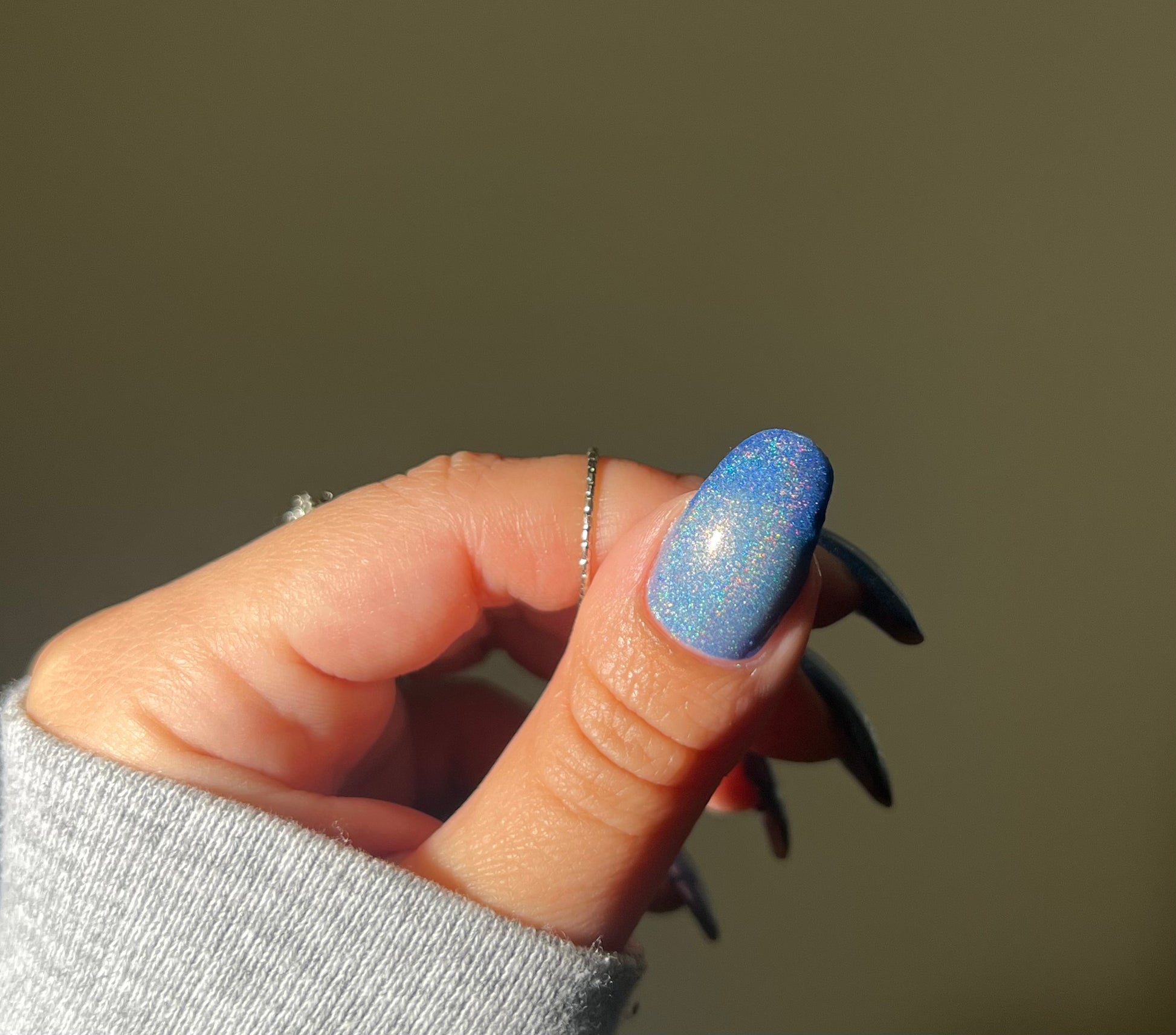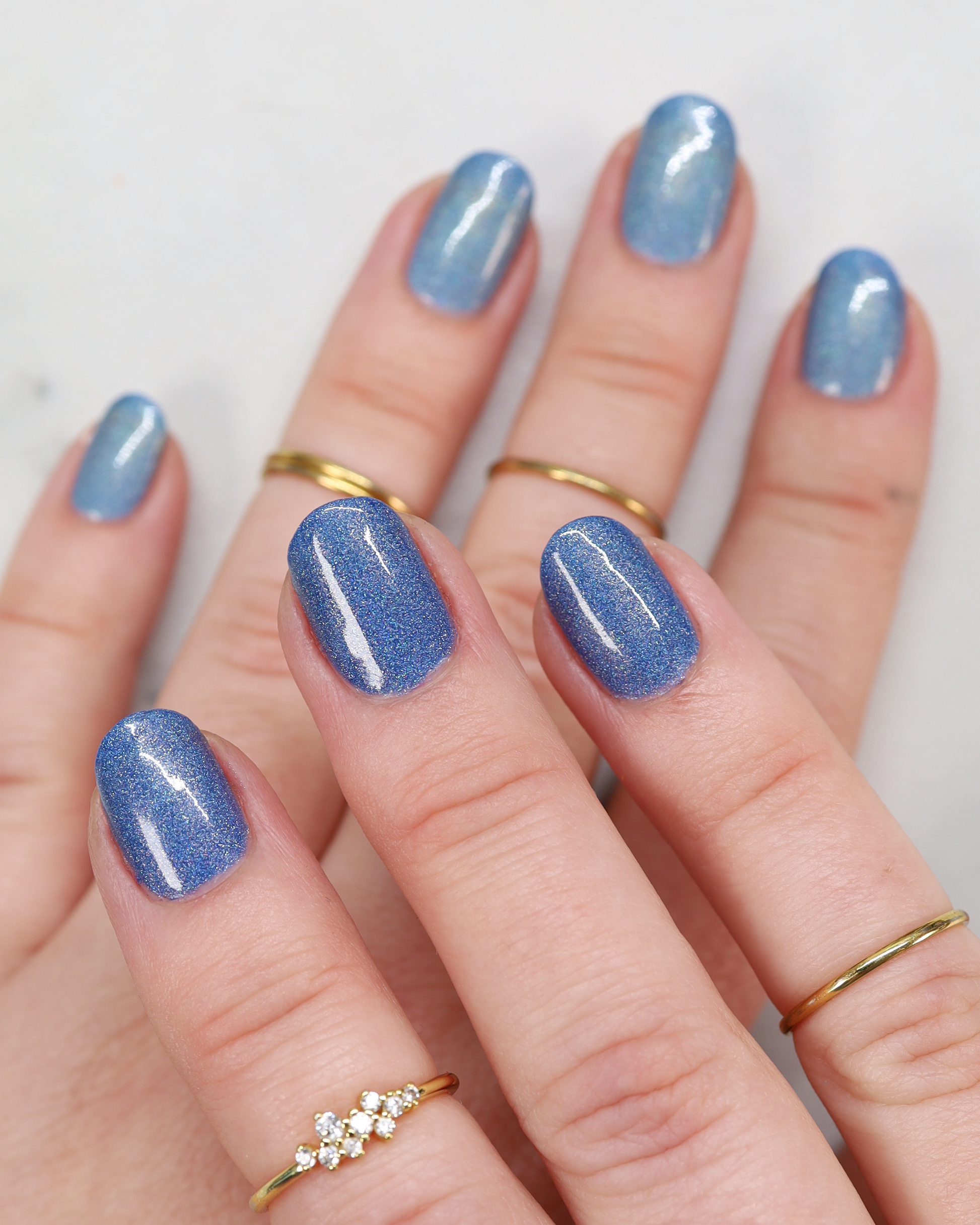 Part of my first purchase from this brand, I was very impressed! So subtle and pretty in indoor lighting and then really dazzles in the sunlight. Great quality too, 5 plus days of wear and no chipping, opaque in 2 coats, couldn’t ask for more! A new favorite!