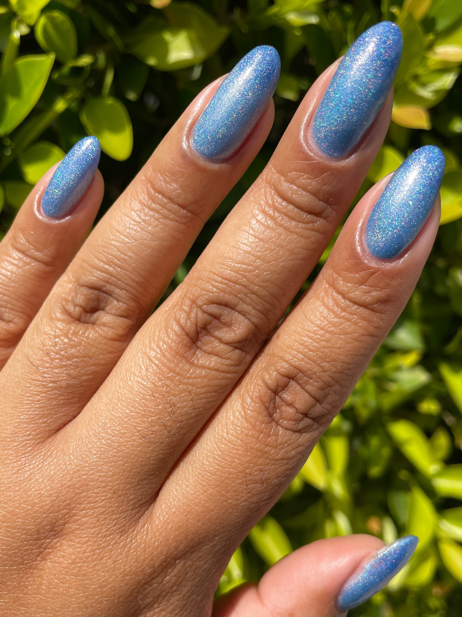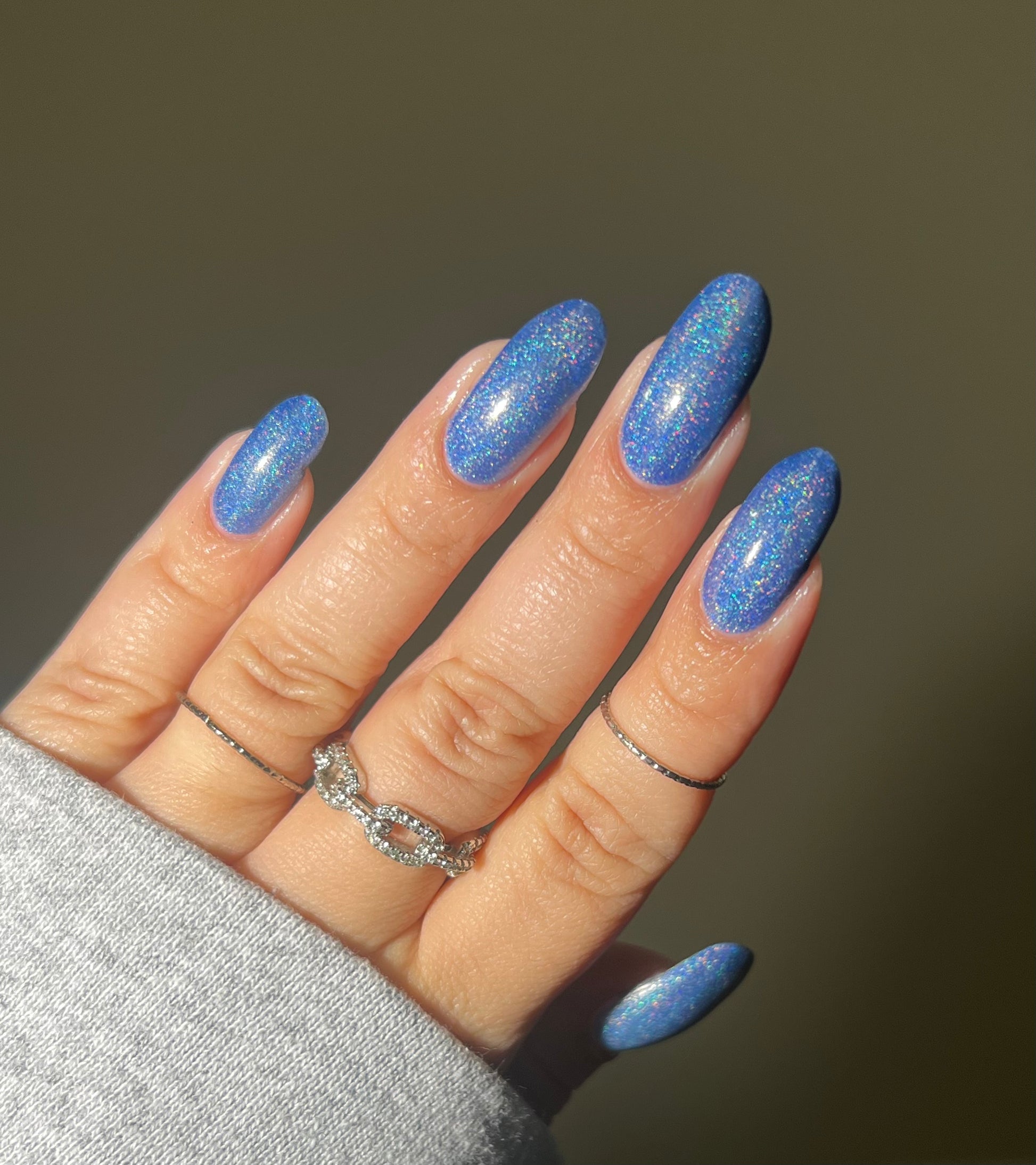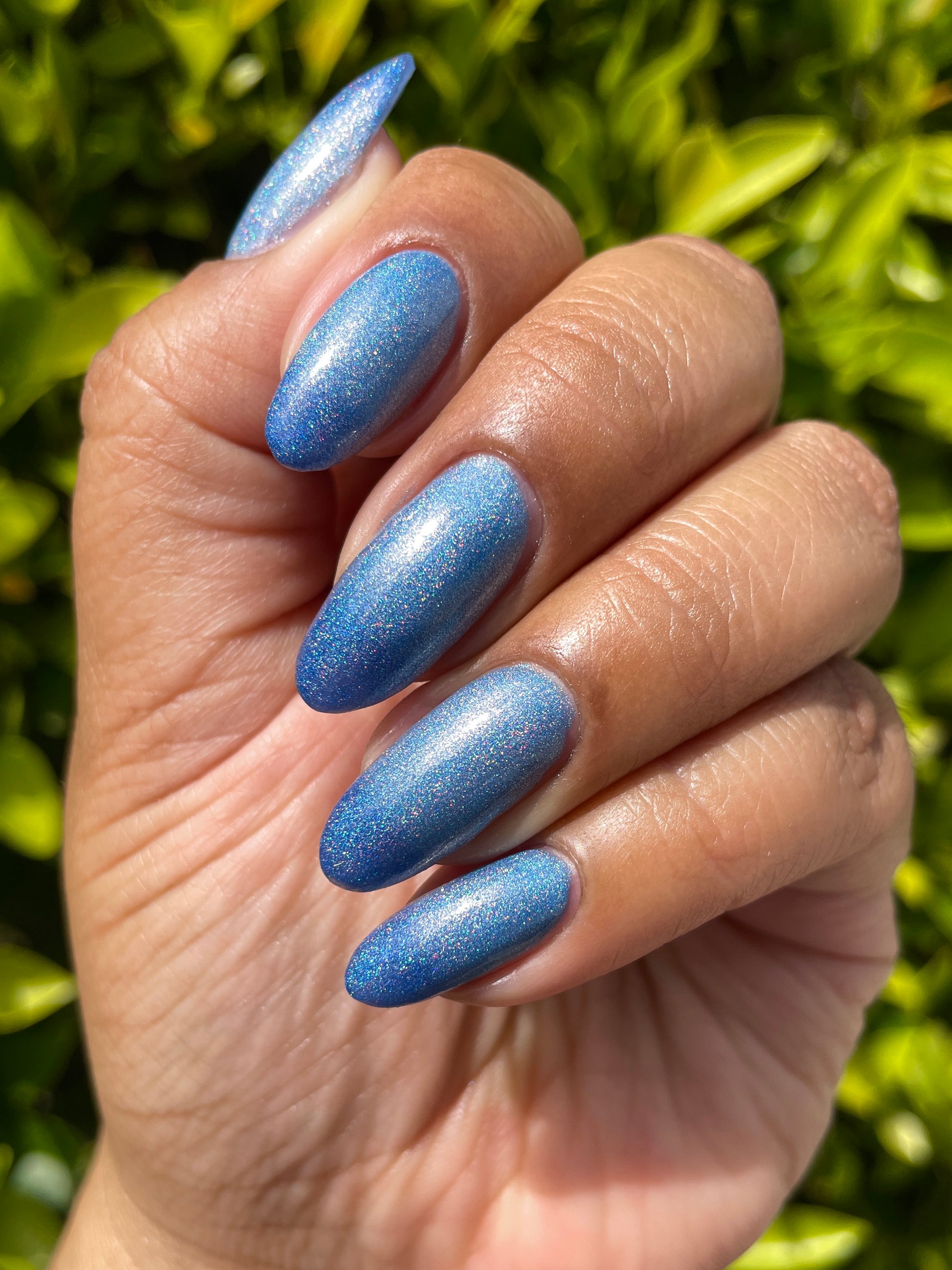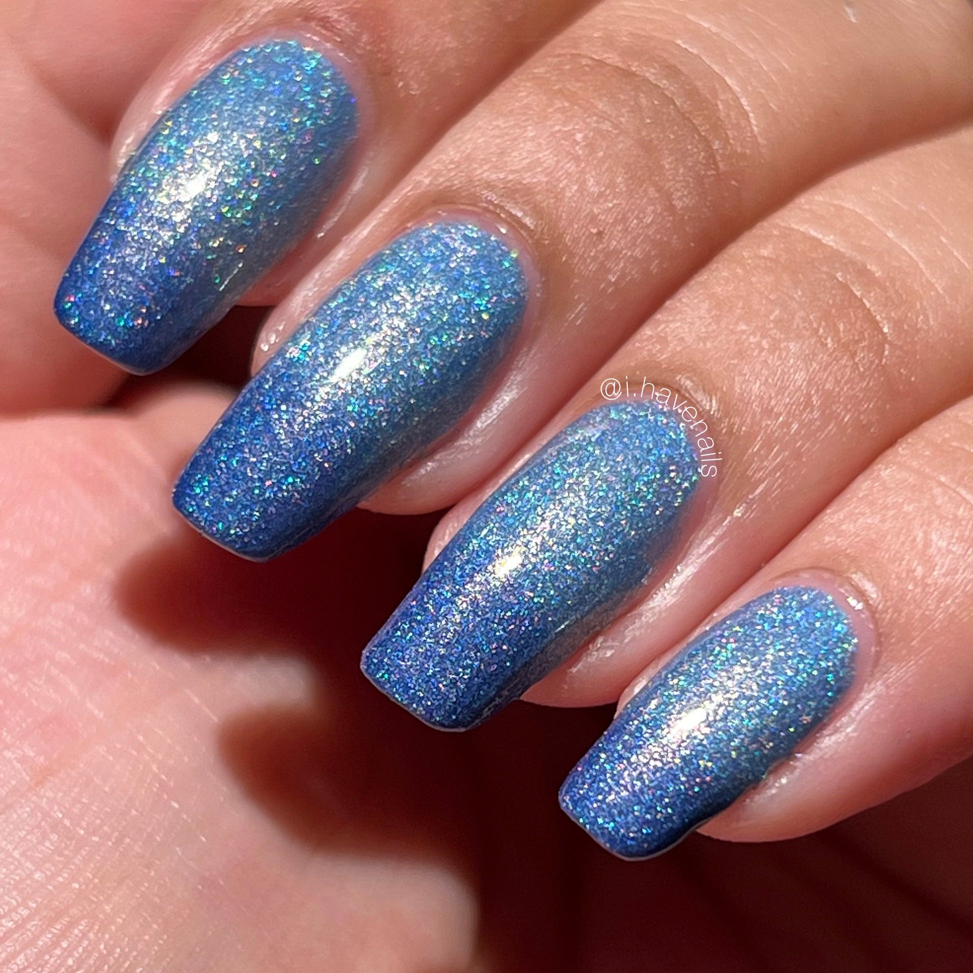 Part of my first purchase from this brand, I was very impressed! So subtle and pretty in indoor lighting and then really dazzles in the sunlight. Great quality too, 5 plus days of wear and no chipping, opaque in 2 coats, couldn’t ask for more! A new favorite!