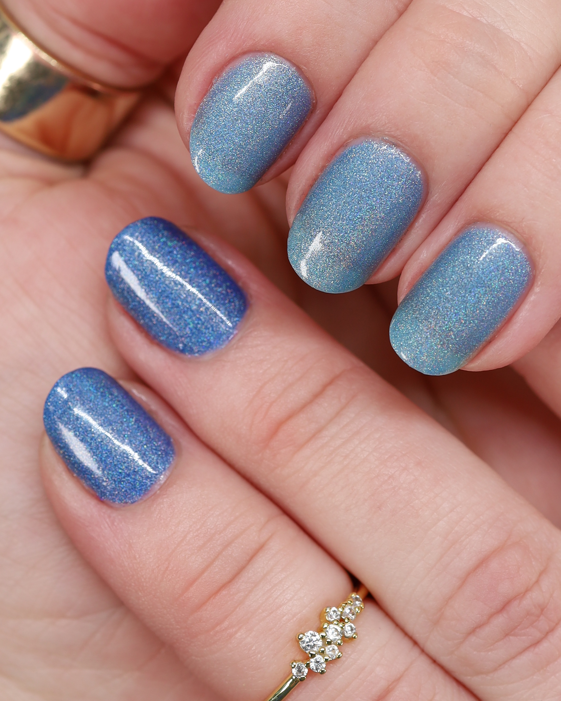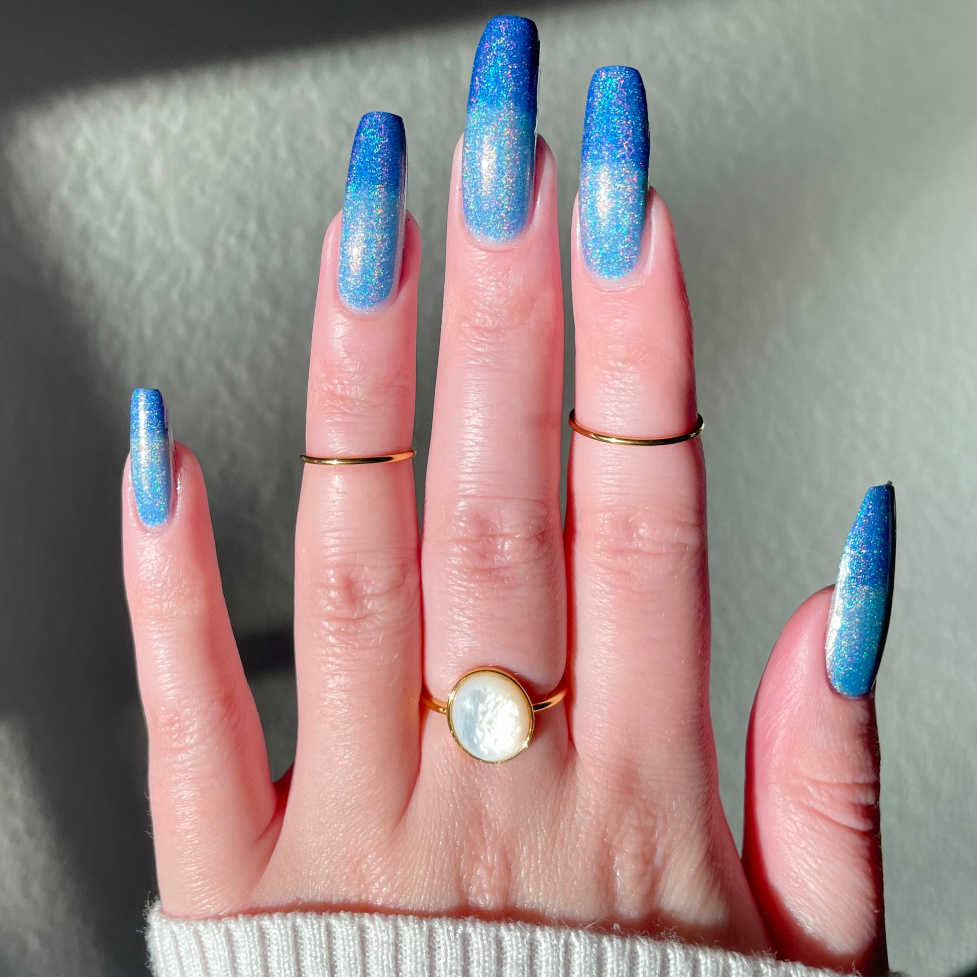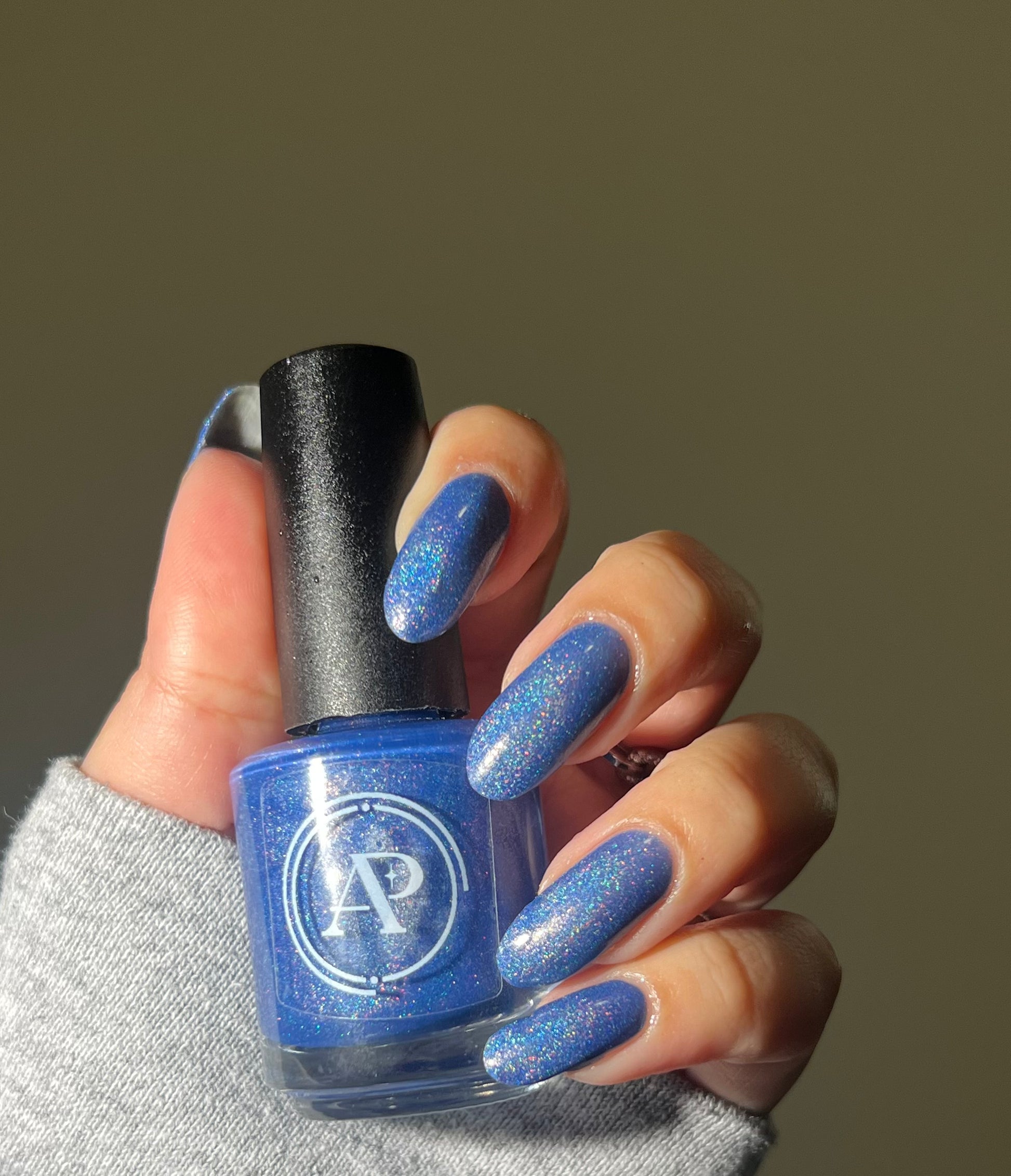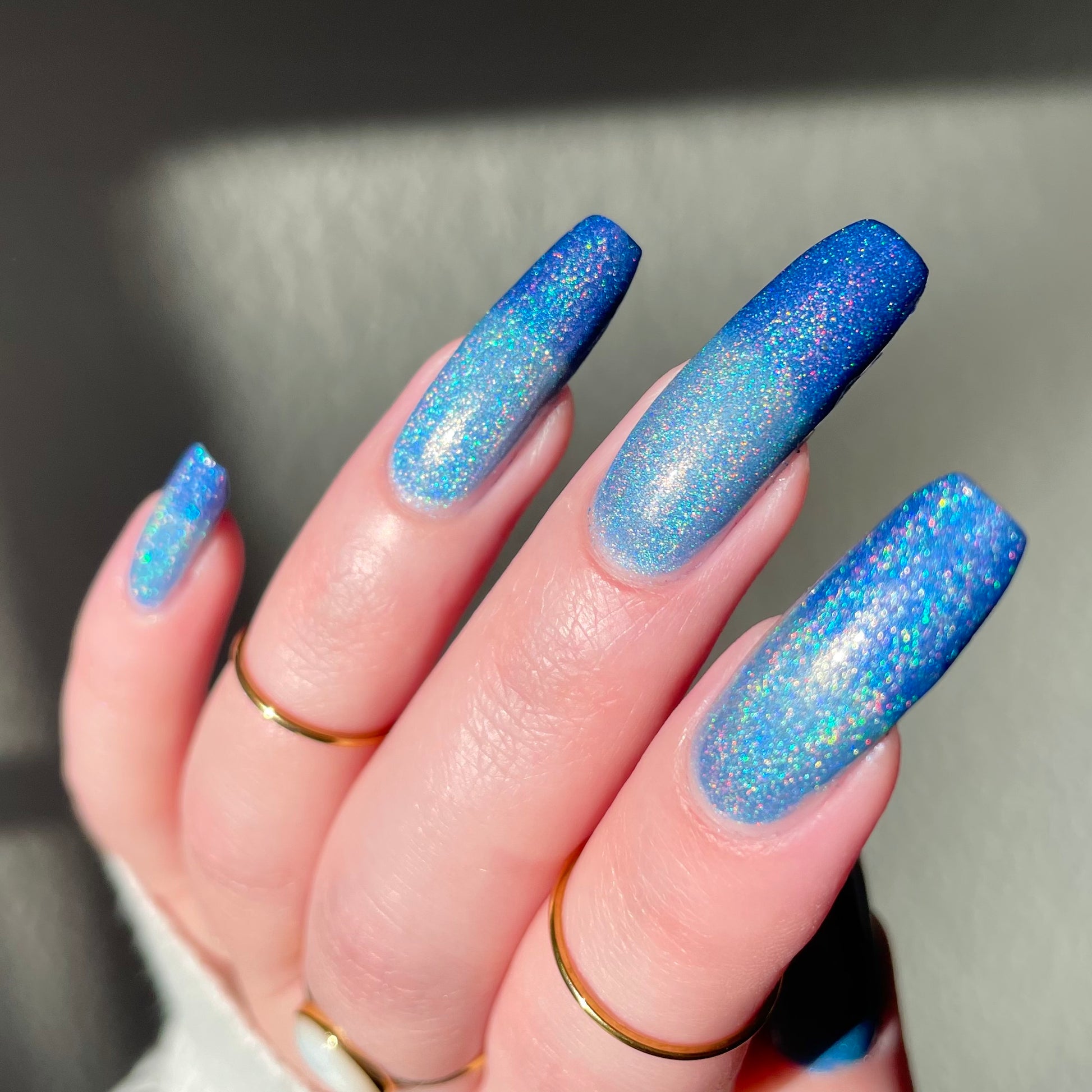 Part of my first purchase from this brand, I was very impressed! So subtle and pretty in indoor lighting and then really dazzles in the sunlight. Great quality too, 5 plus days of wear and no chipping, opaque in 2 coats, couldn’t ask for more! A new favorite!