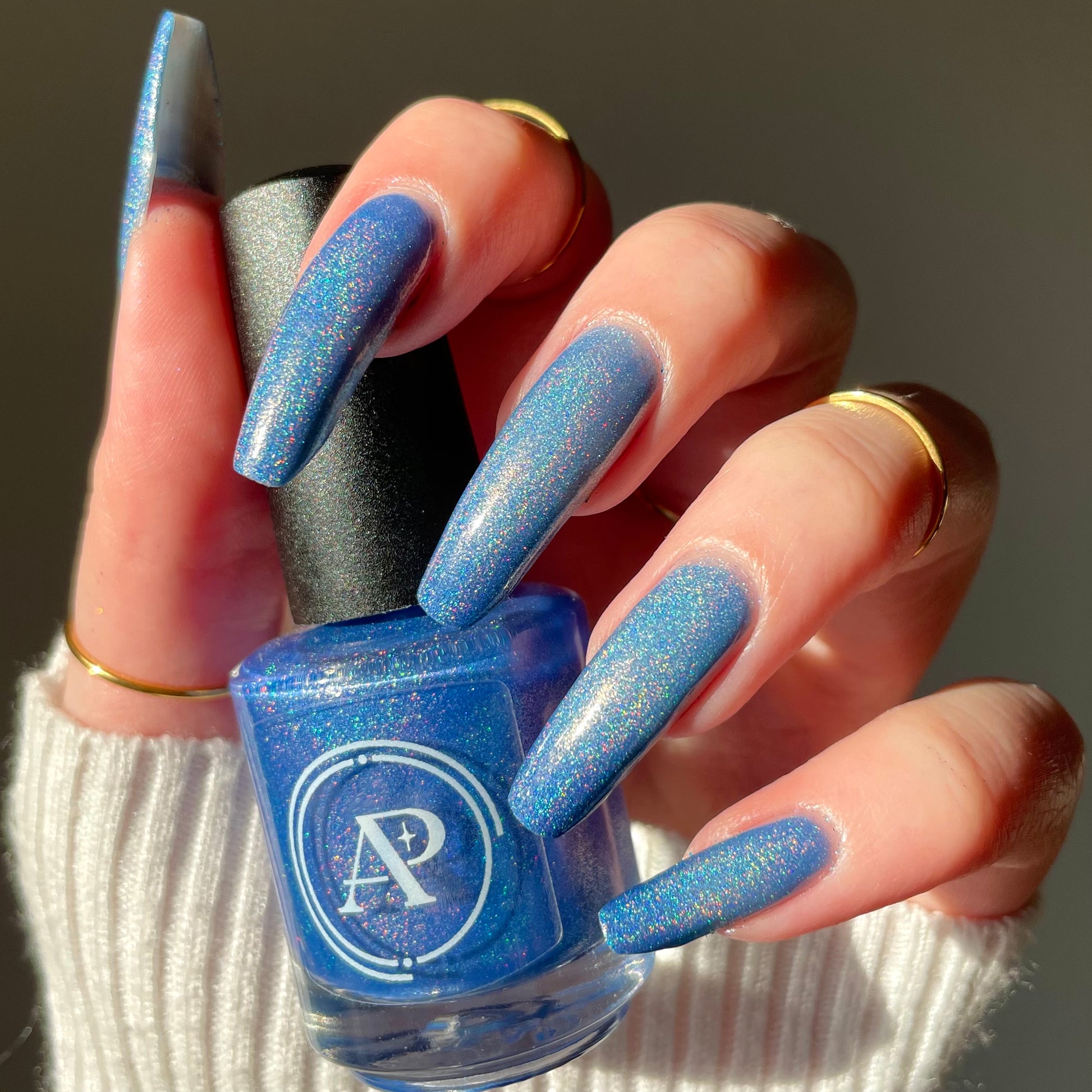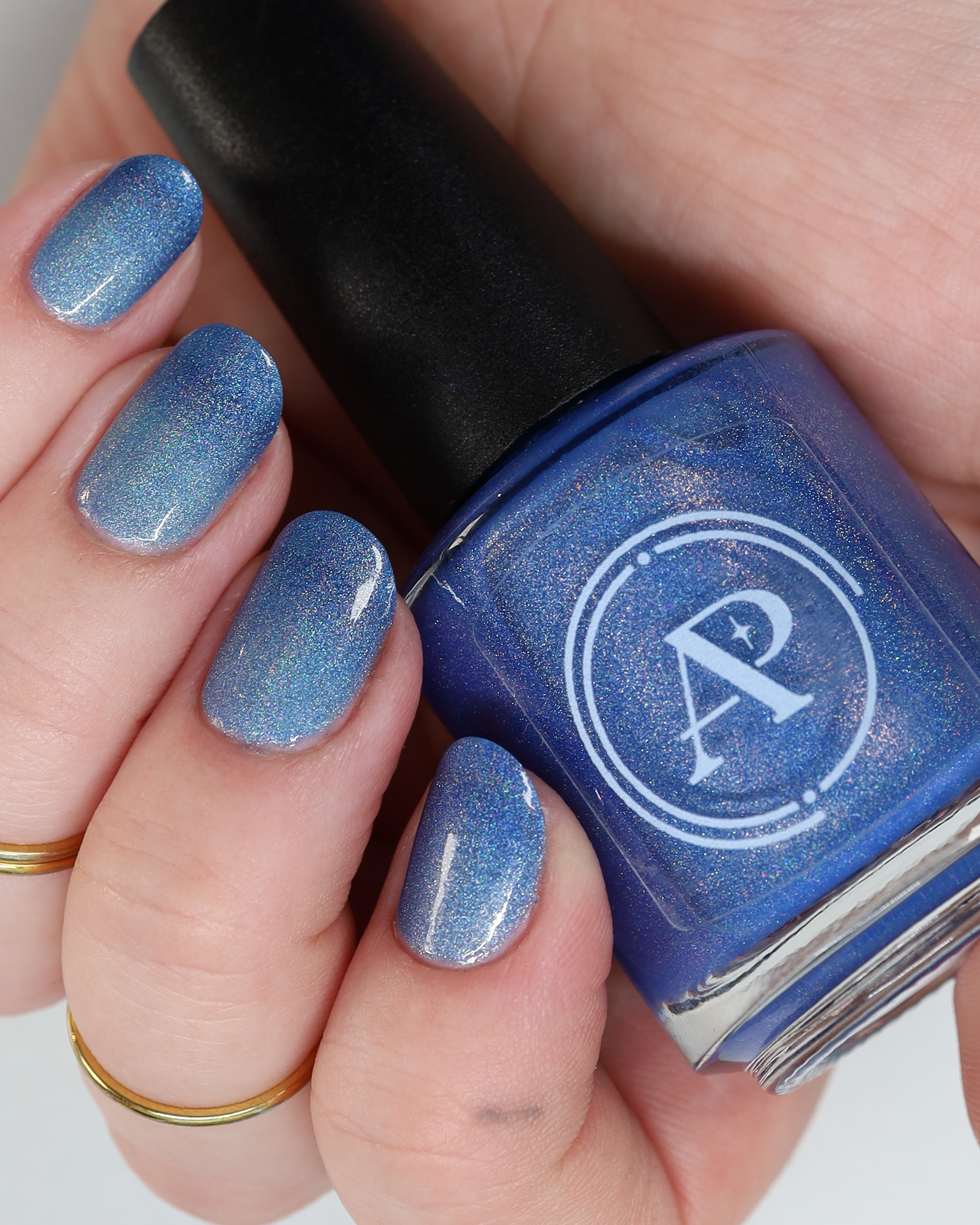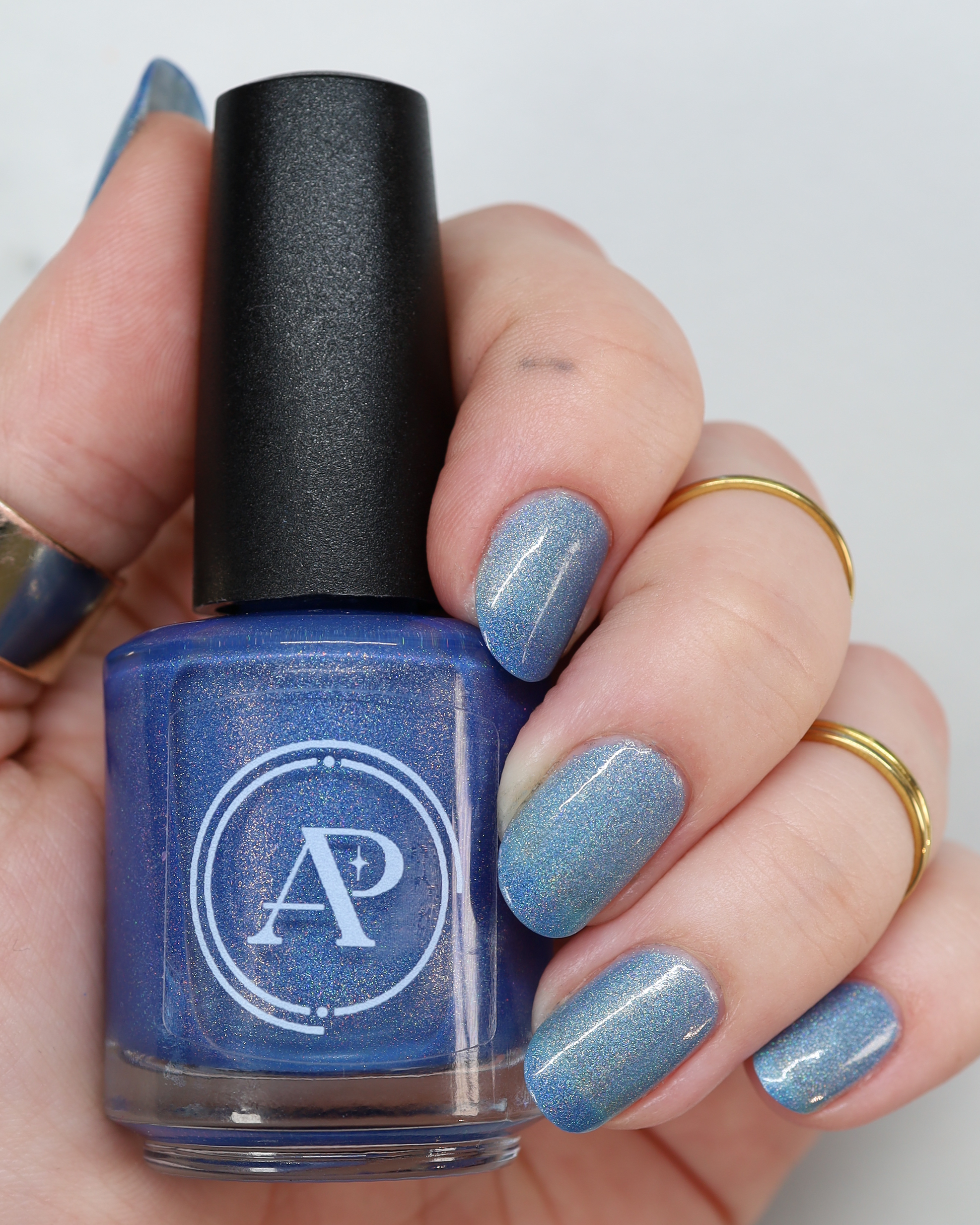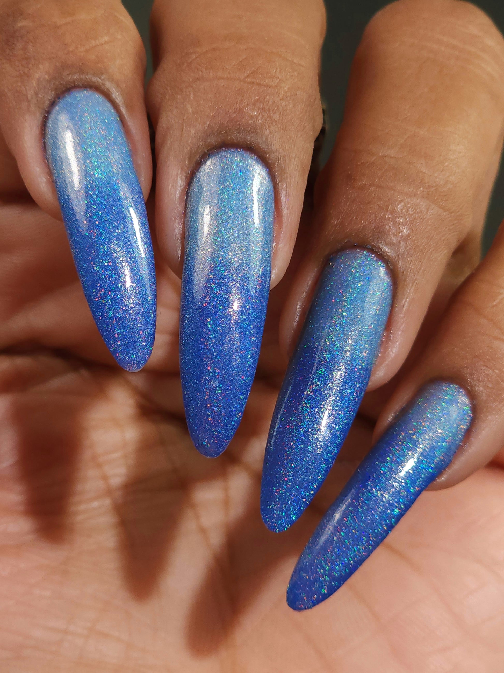 Part of my first purchase from this brand, I was very impressed! So subtle and pretty in indoor lighting and then really dazzles in the sunlight. Great quality too, 5 plus days of wear and no chipping, opaque in 2 coats, couldn’t ask for more! A new favorite!