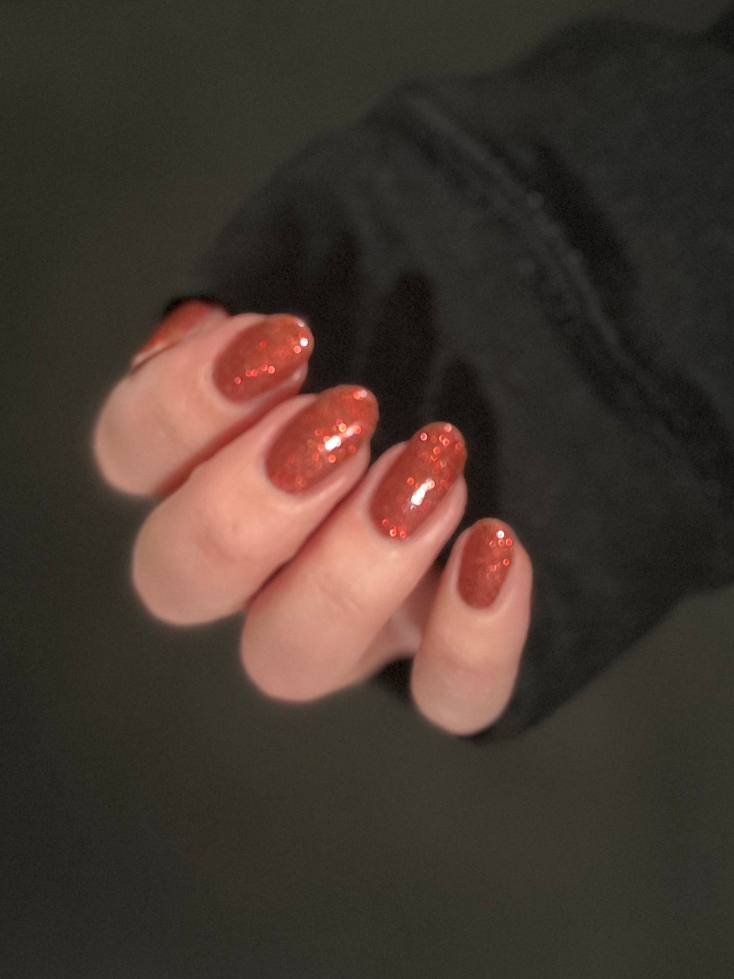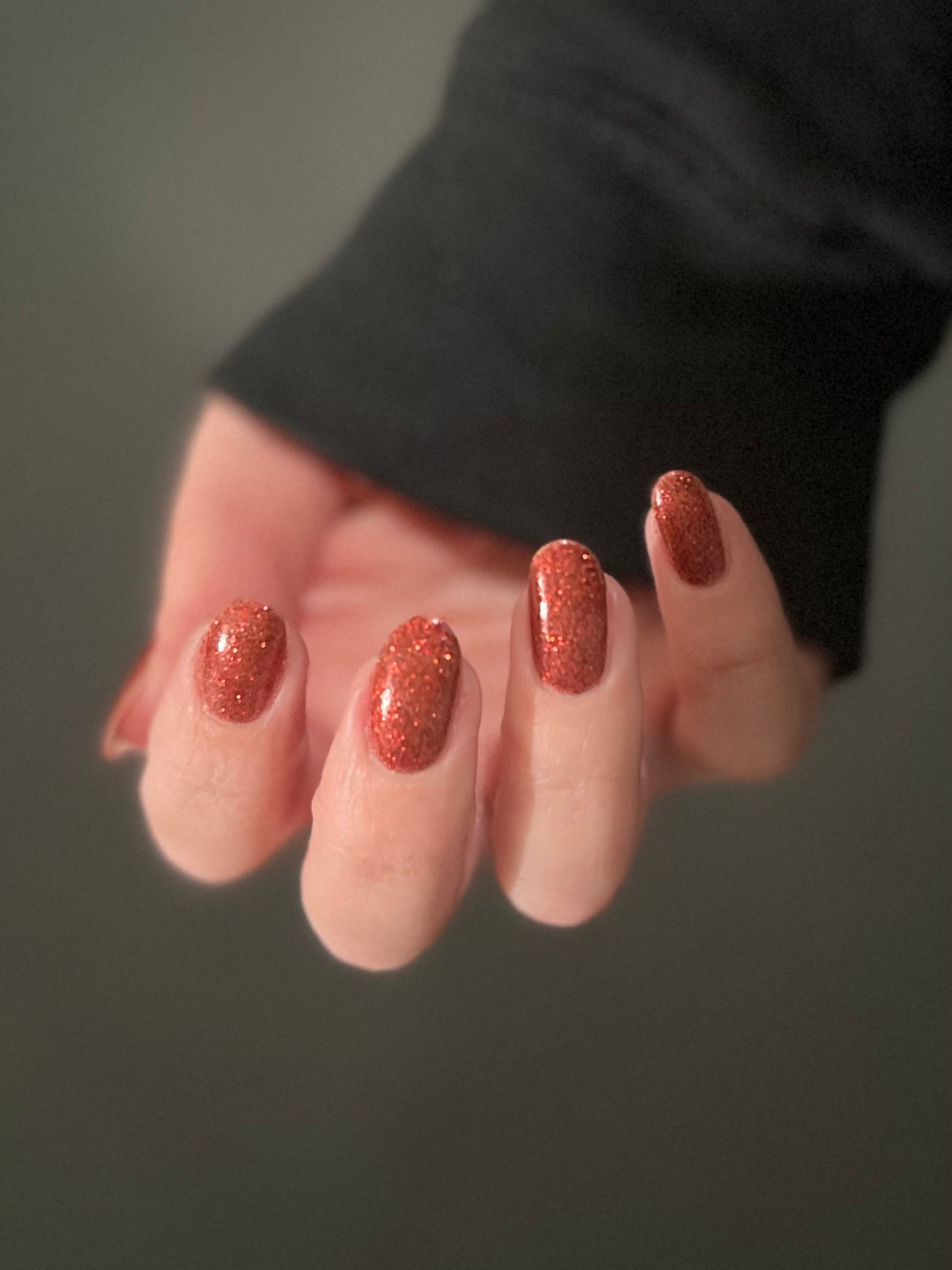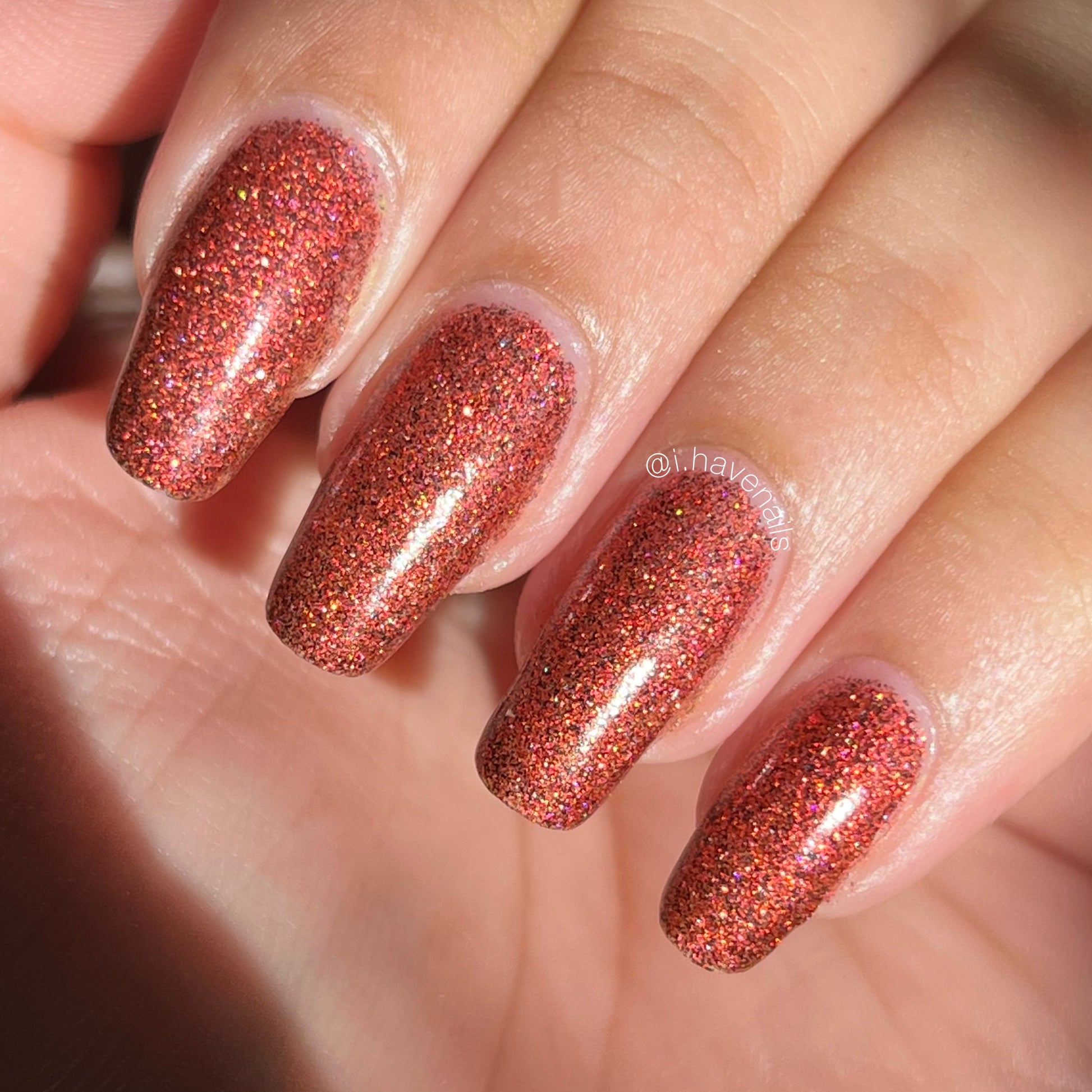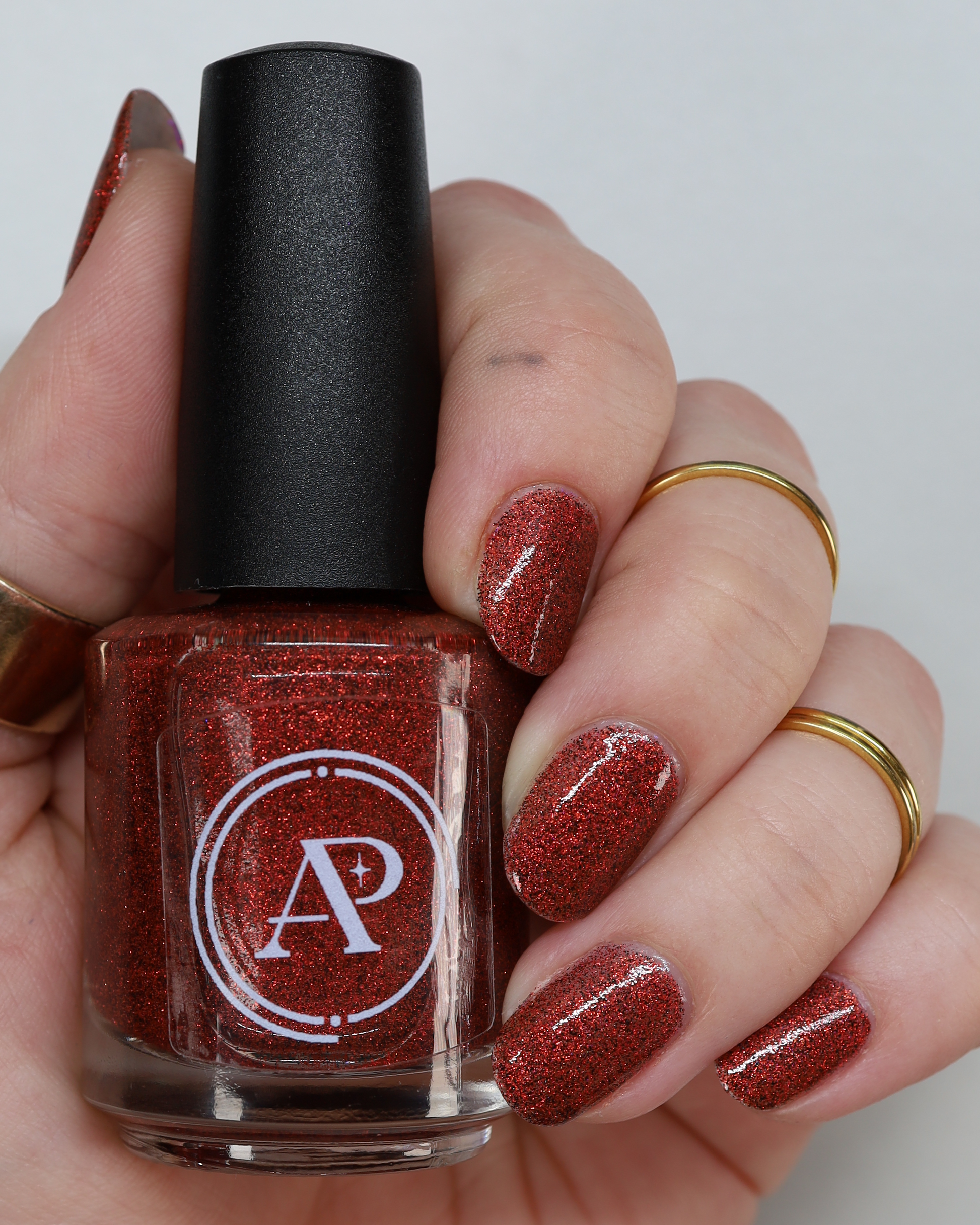 This shade can be sponged on in 1-2 coats or opaque in 3-4 coats with normal application. This particular glitter shade is slightly sparser so that it can be used as a topper over your favorite red, black or red-black multi-chrome shade.