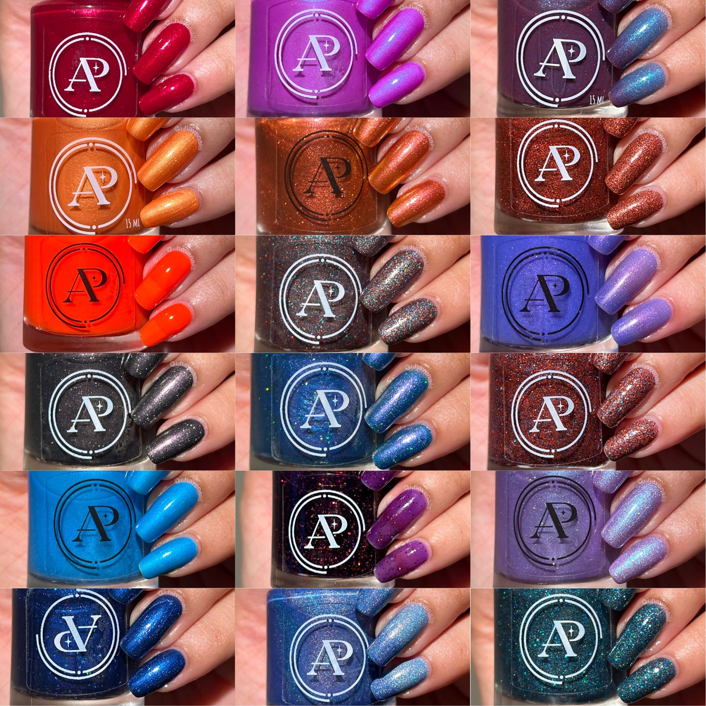 This listing includes one 15 ml nail bottle of each of the following shades: